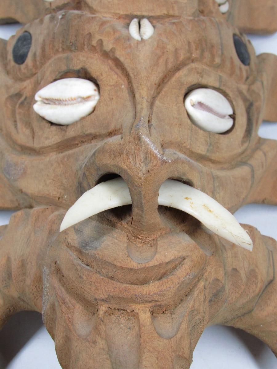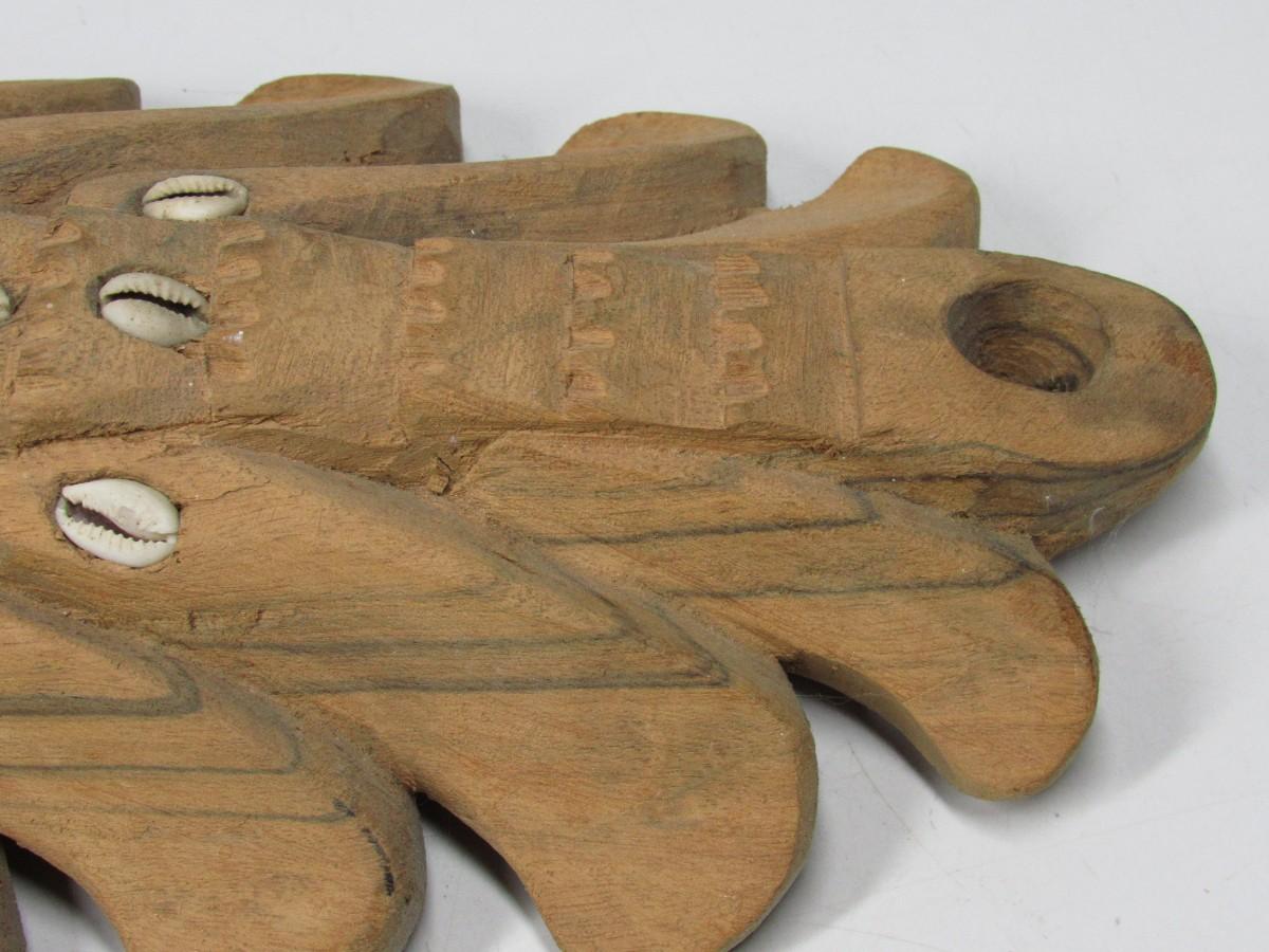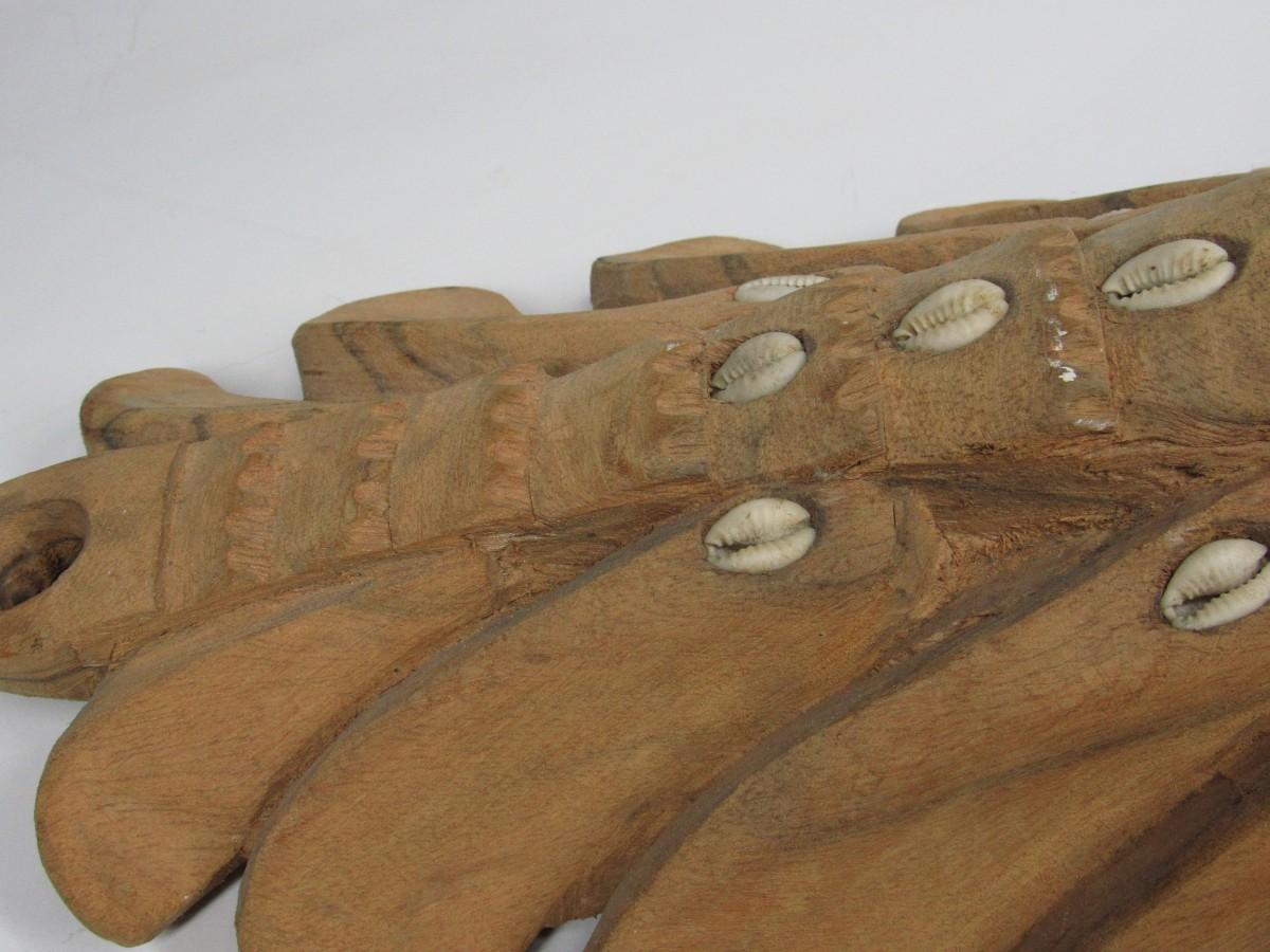Vintage Handcrafted Folk Art Papau New Guinea 1970's Ethnic Cultural Wooden Hanging Decor Mask with Inlaid Seashells