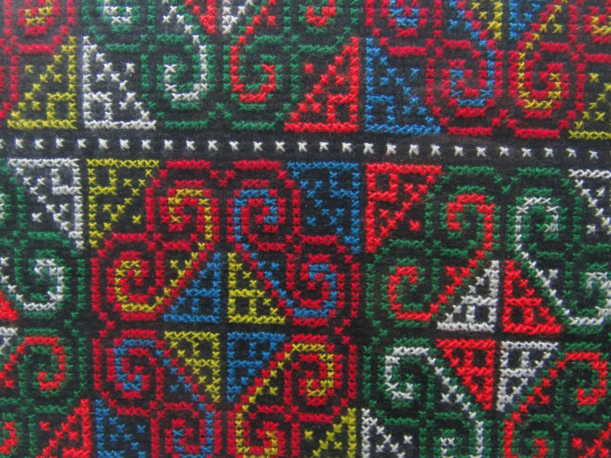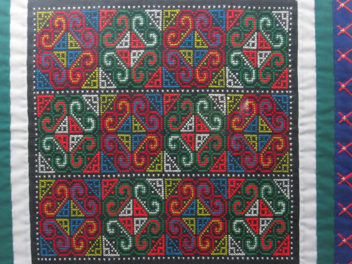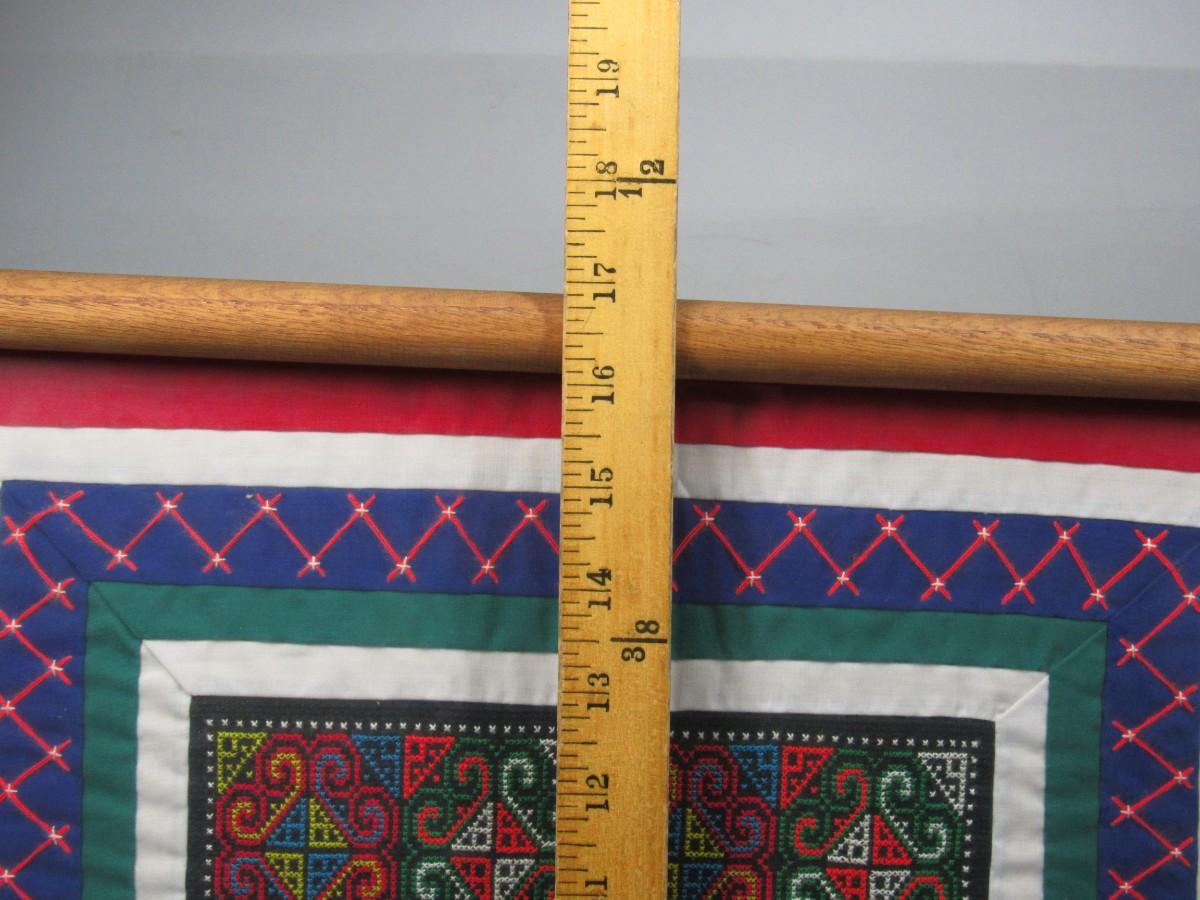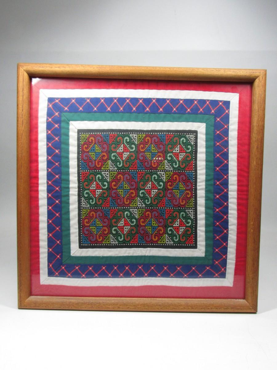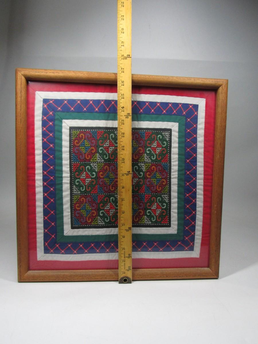 Vintage Framed Hmong Hand Crafted Cross Stitch Material Ethnic Colorful Pattern Art