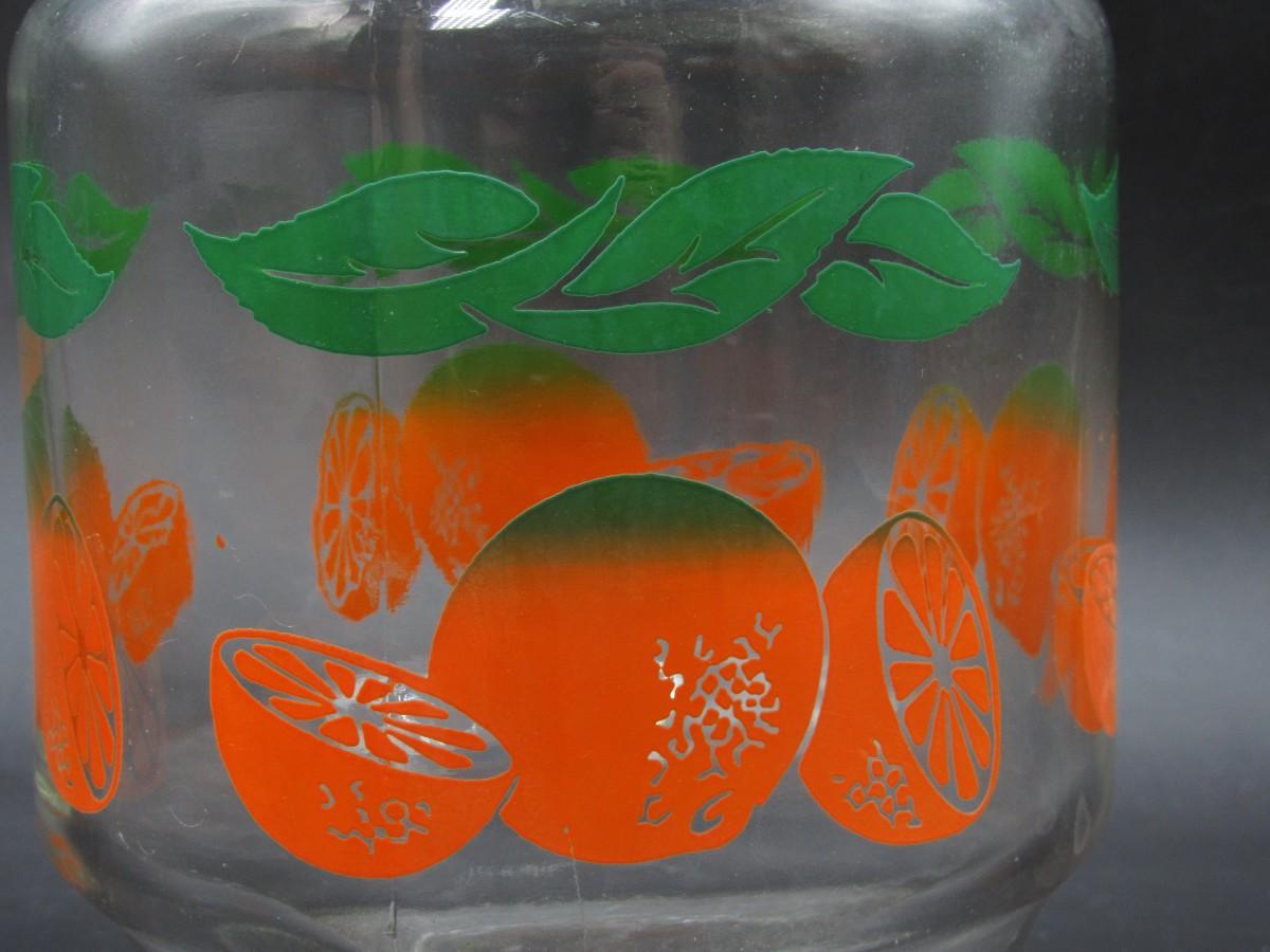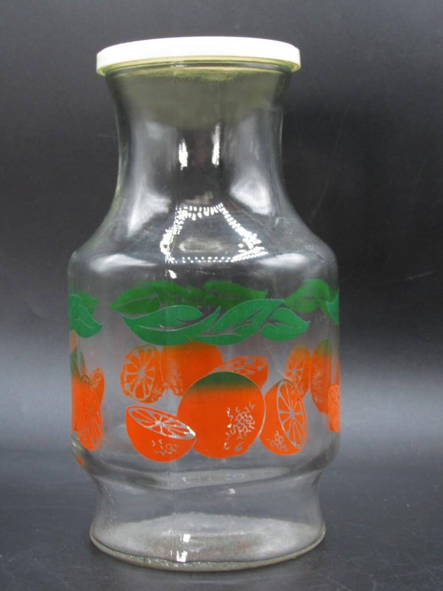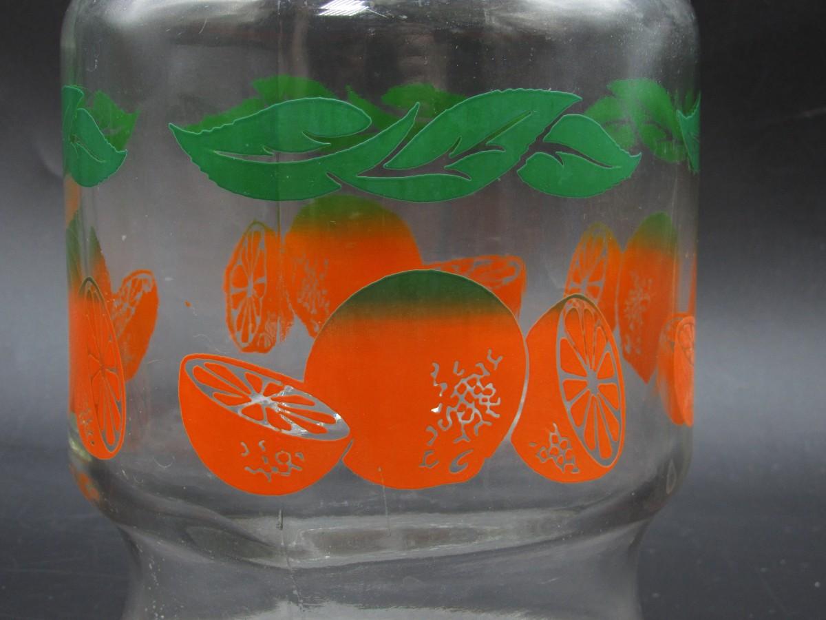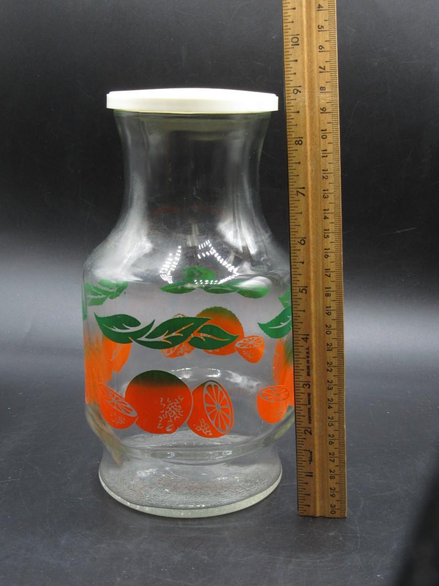 Vintage Anchor Hocking Style Orange Juice Groovy Design Sealing Lid Glass Pitcher Carafer