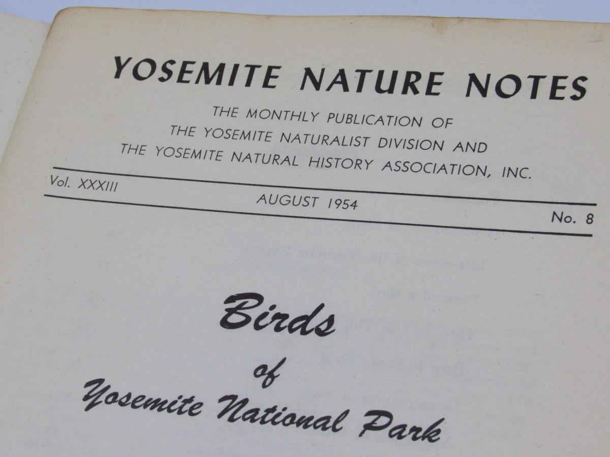 Birds of Yosemite Special Issue Vintage Yosemite Nature Notes