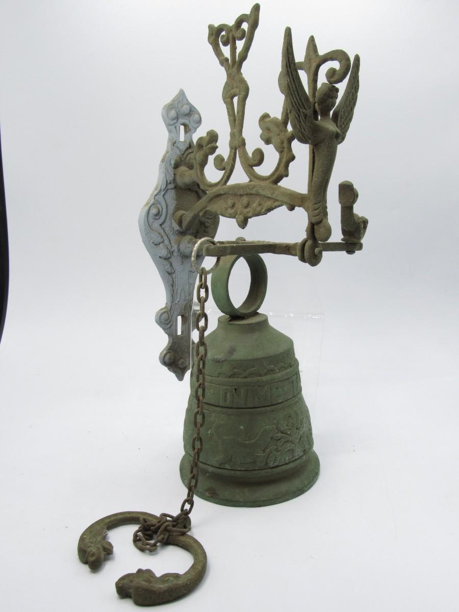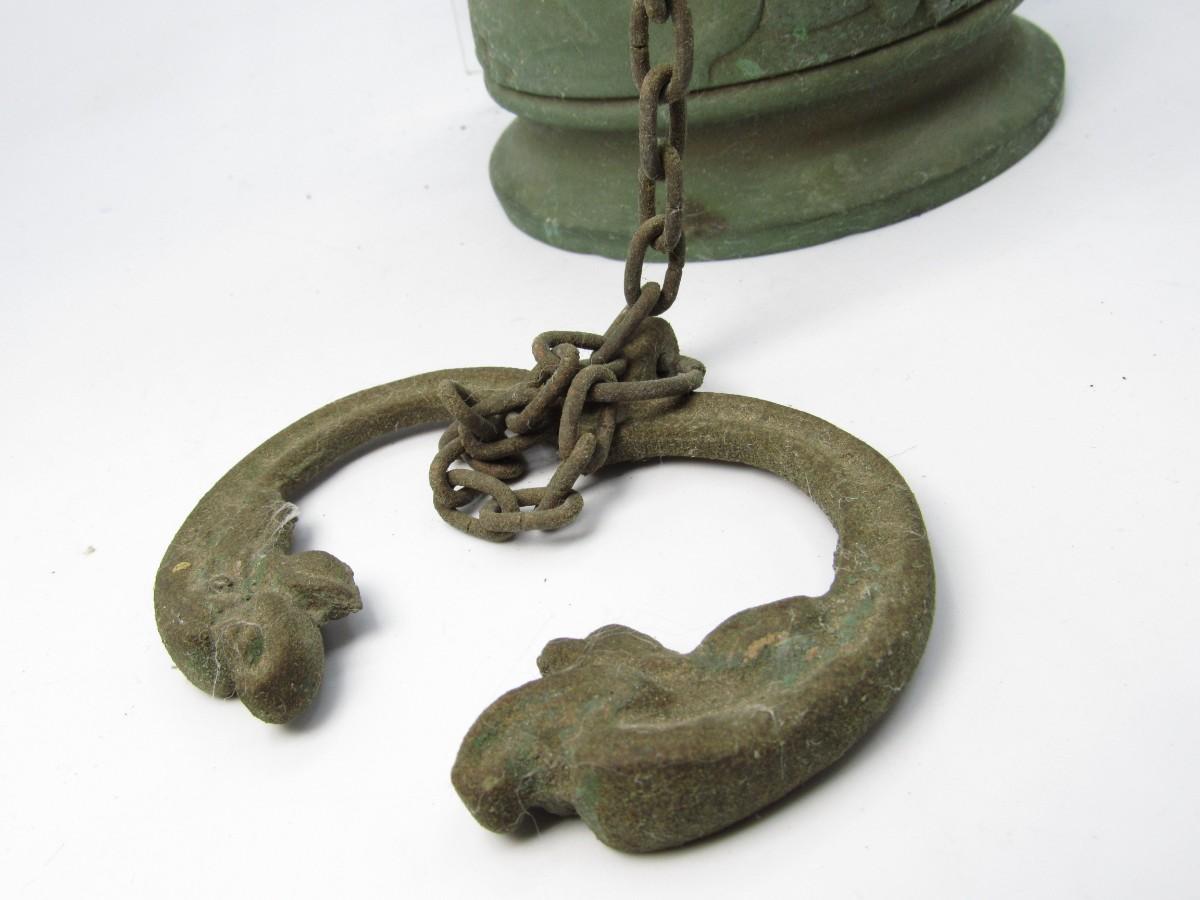 Vintage Worn Bronze Wall Hanging Cloister Bell Monastery Greeting Pull Bell
