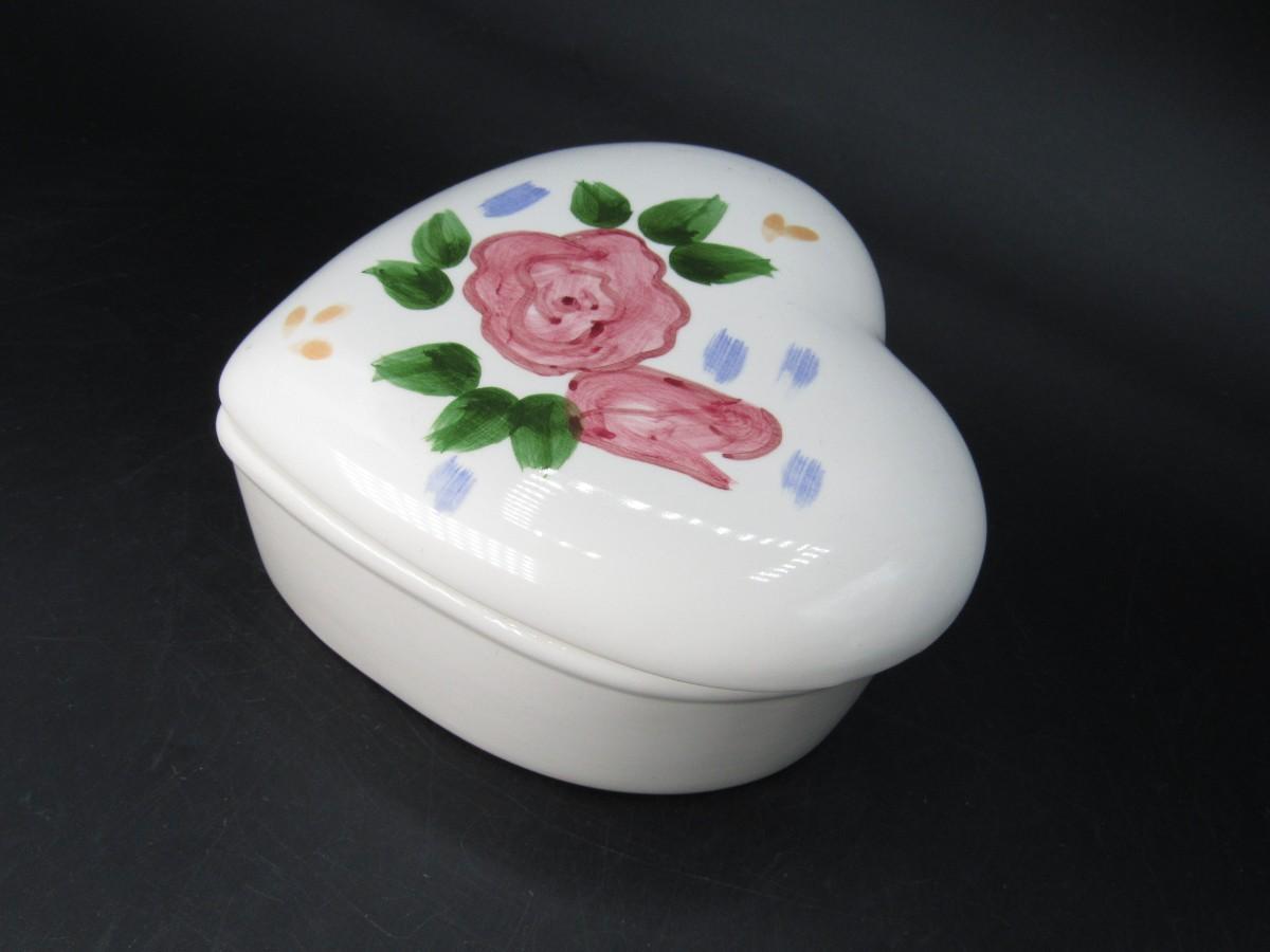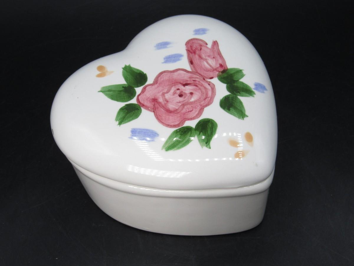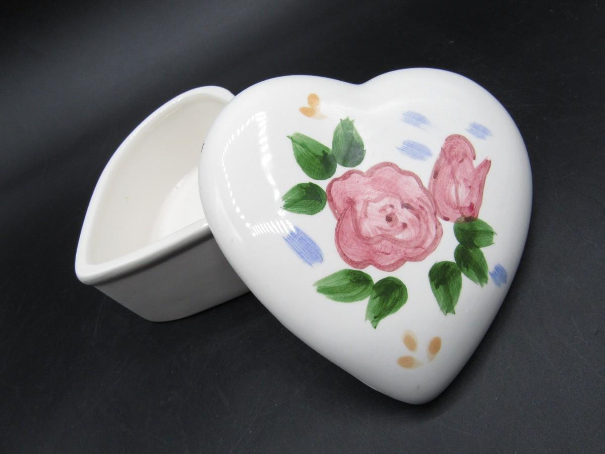 Lidded Ceramic WCL Heart Shape Rose Trinket Dish