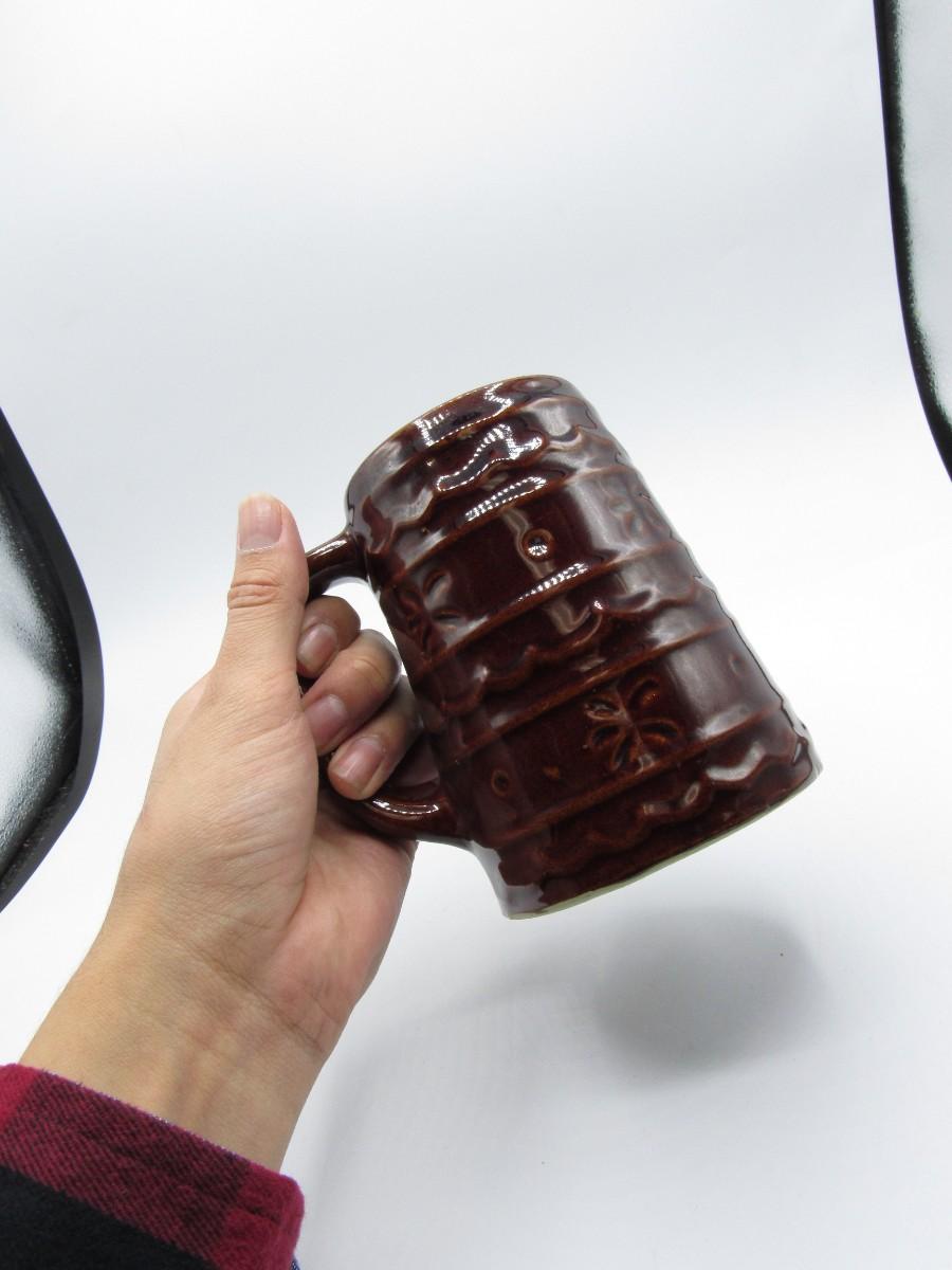 Retro USA Pottery Art Heavy Brown Drinking Pint Coffee Mug