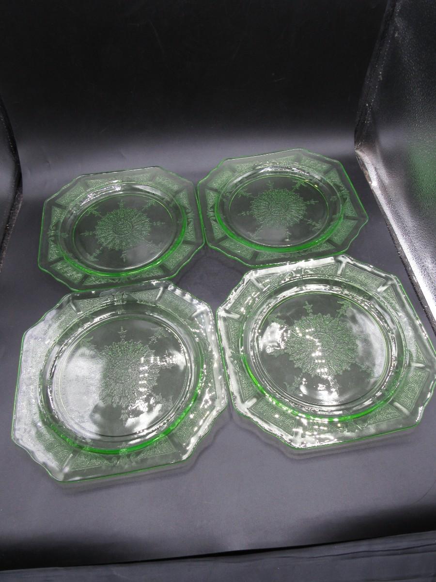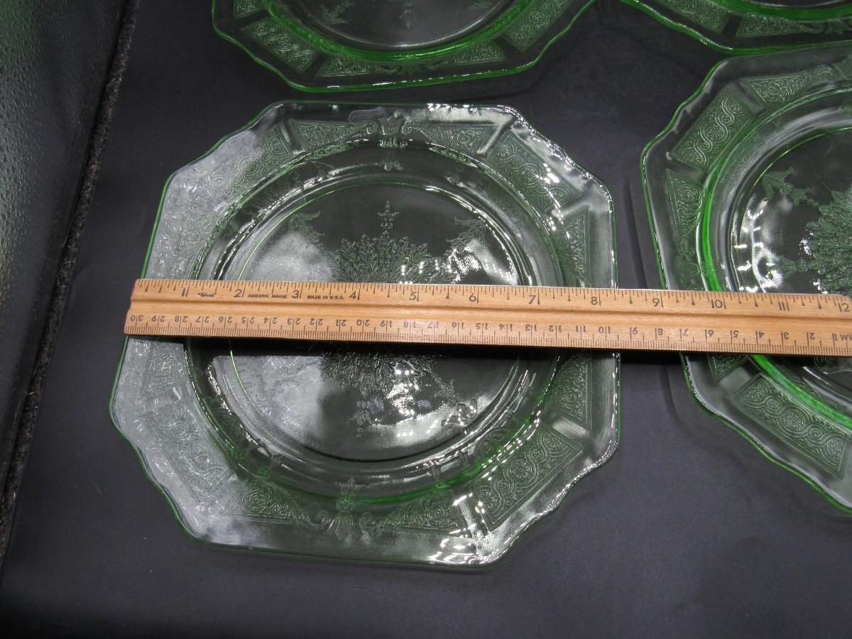Set of Vintage Uranium Depression Glass Anchor Hocking Princess Green Dinner Plates