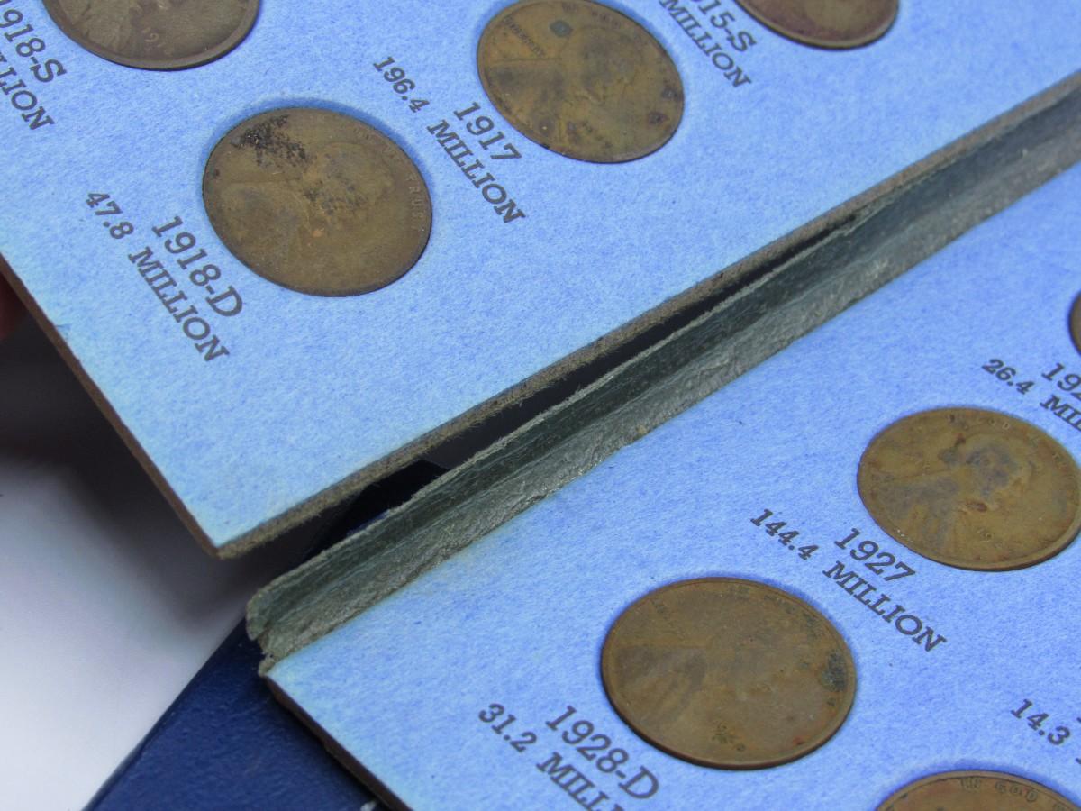 There are some pennies missing from both albums, and one of the album pages is tearing. There is on overall significant damage and is in good collectible condition!