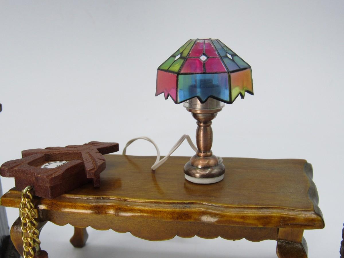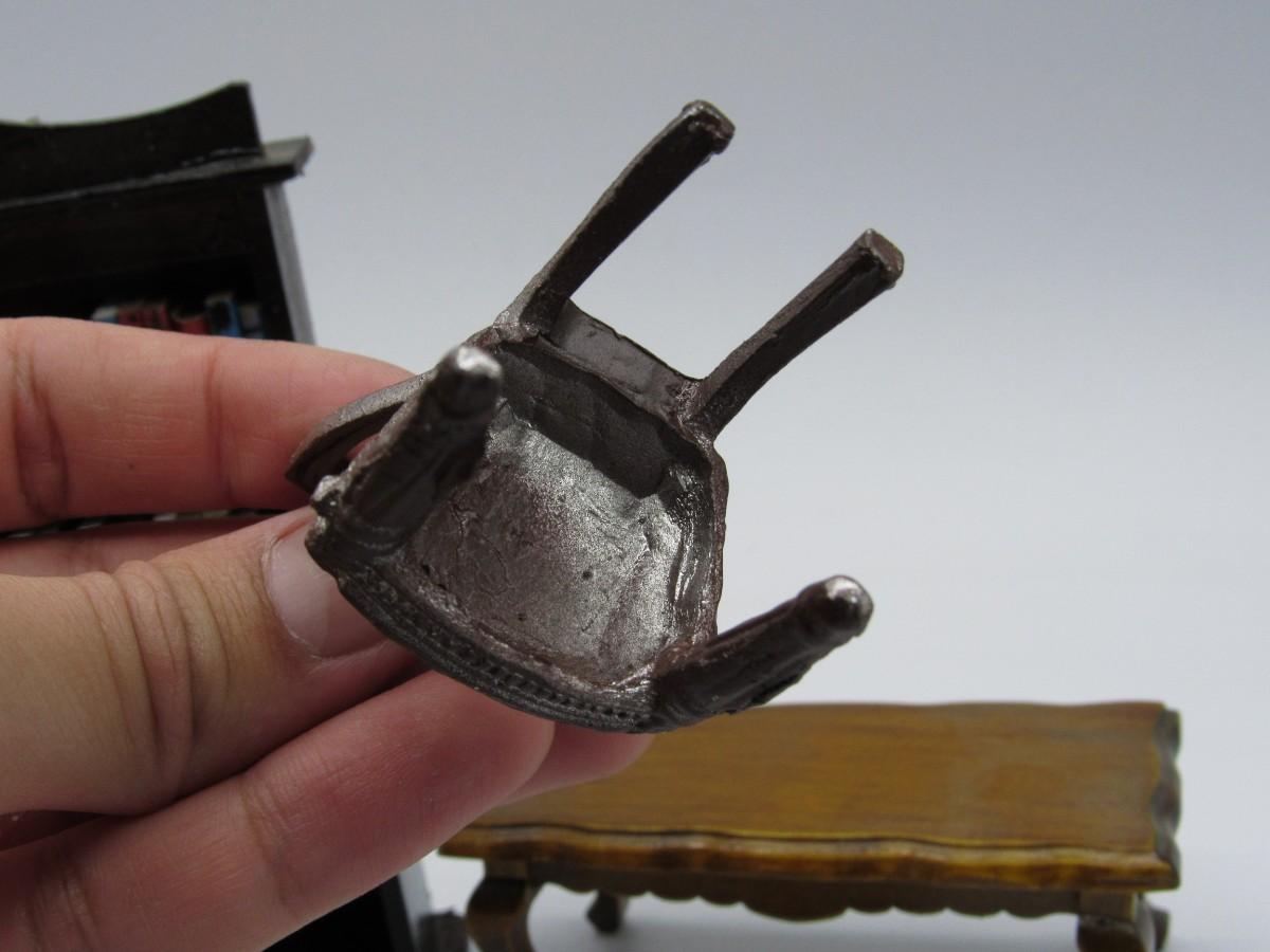 The chair is made out of the metal and is heavier than the rest of the items. The lamp has a special cord and plug, in some dollhouses with electrical wiring the lamp can be turned on. The pieces are very detailed and are perfect for any model home or scenery!