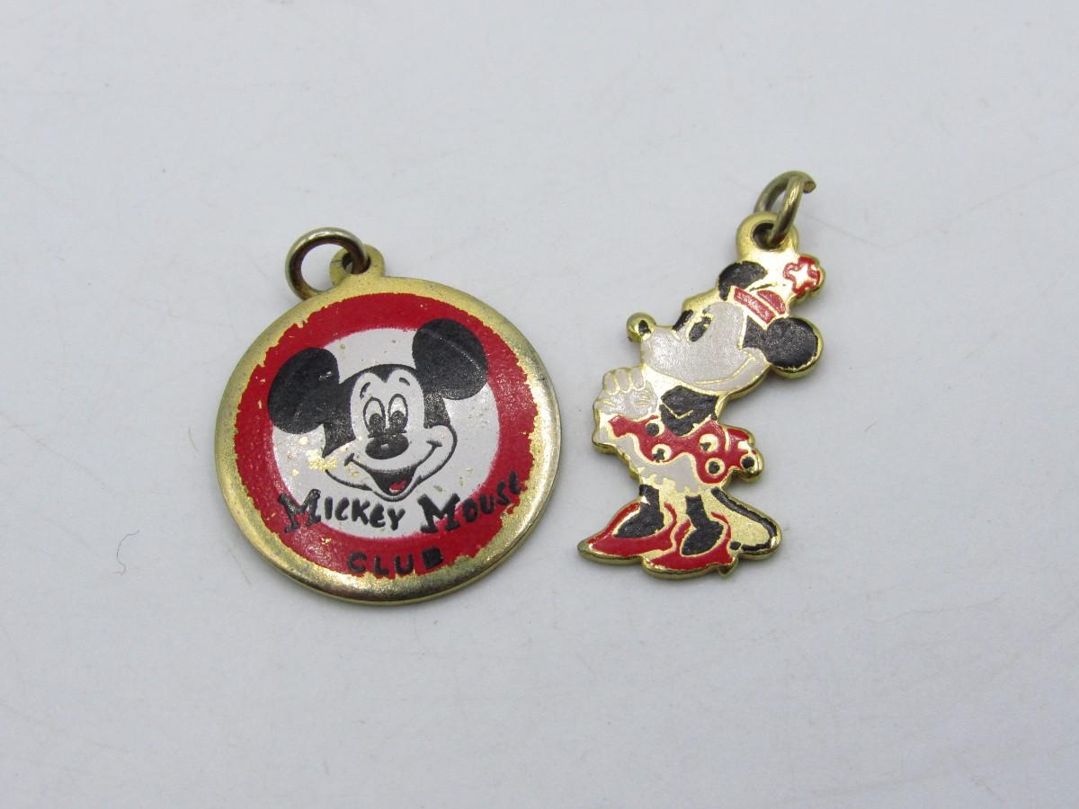 Vintage Walt Disney Productions Mickey Mouse Club & Classic Minnie Mouse Small Charms