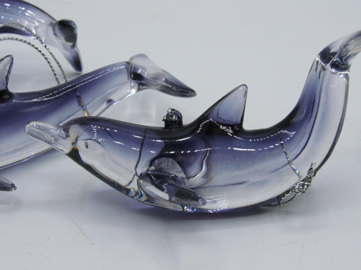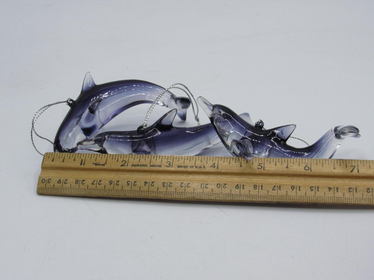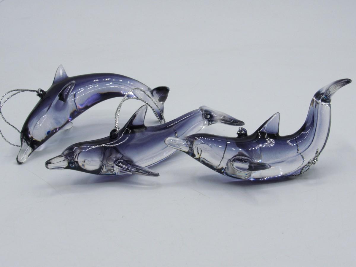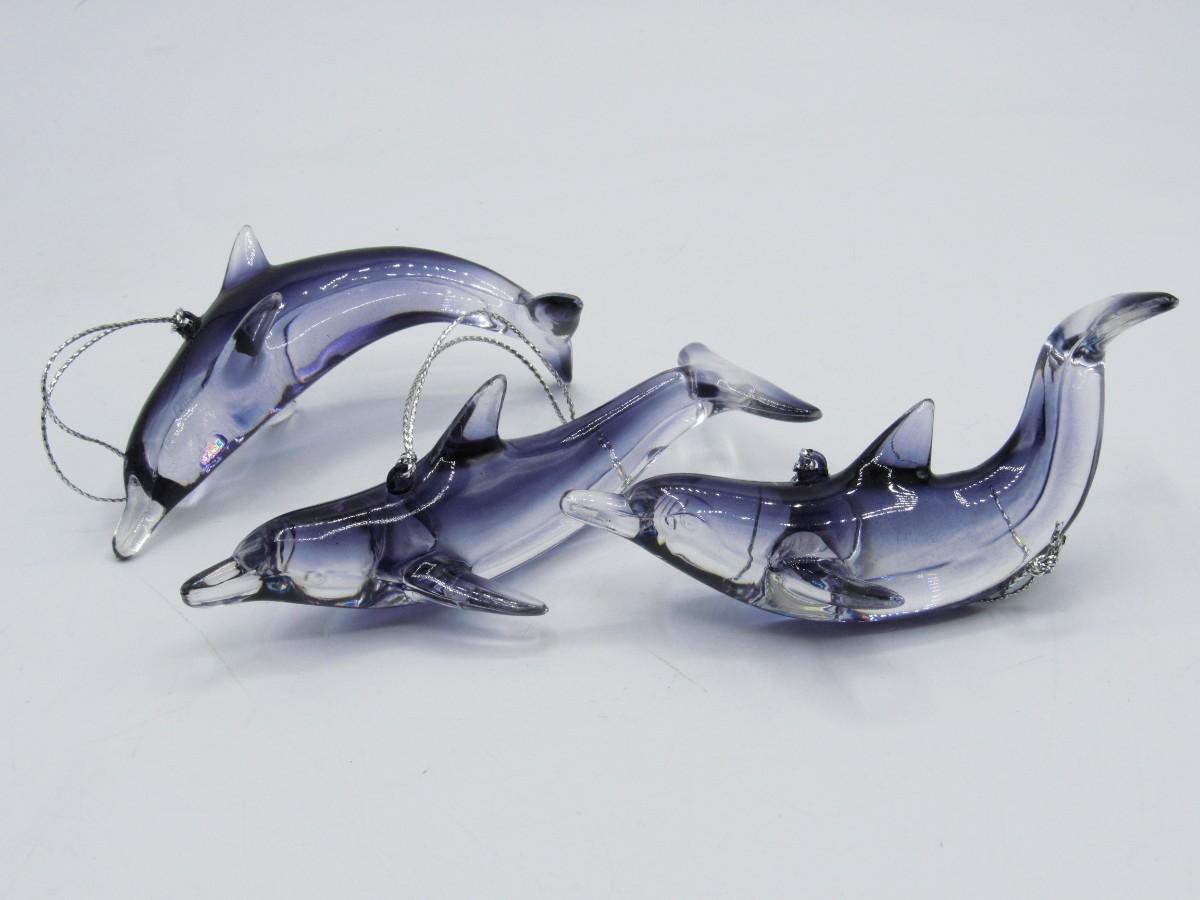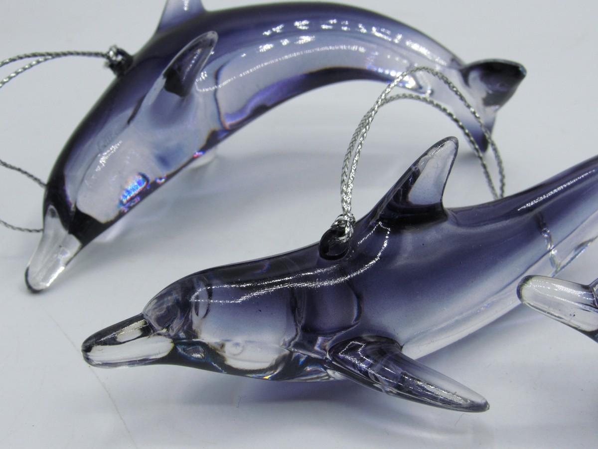 Acrylic dolphin ornaments, great for display or use as Christmas ornaments.