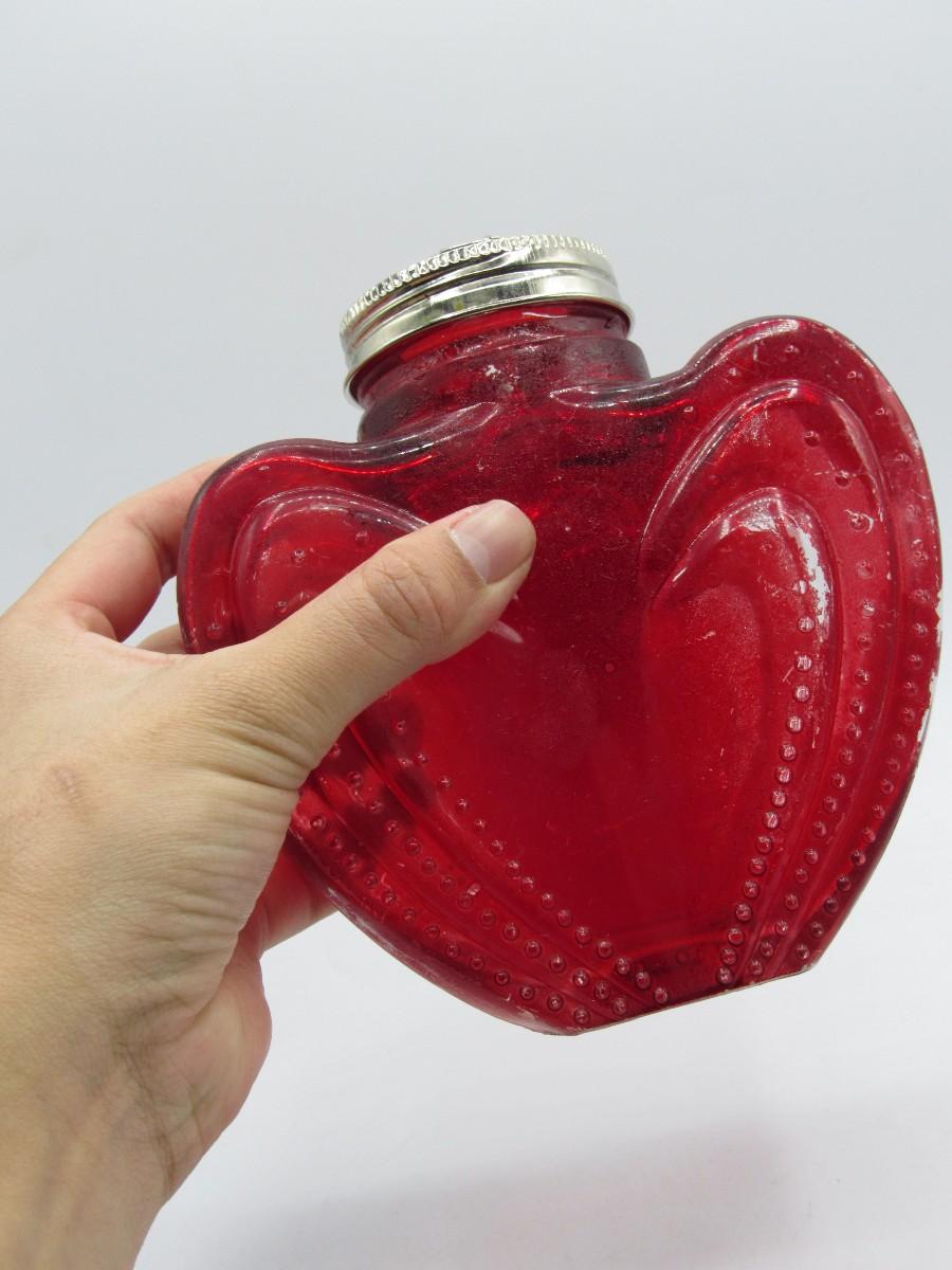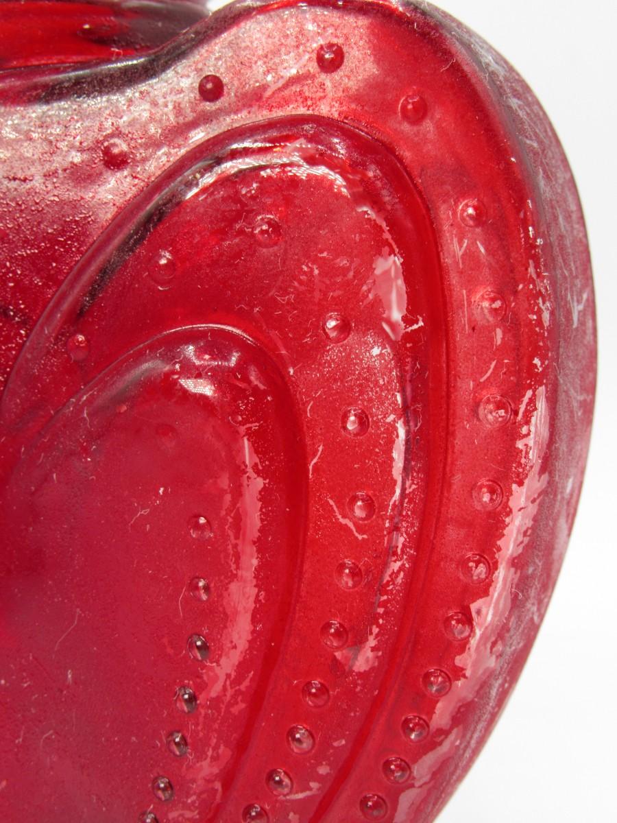 Pinkish Red Glass Heart Flower Stemmed Vase