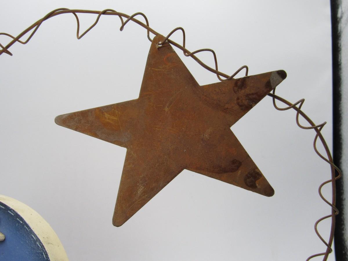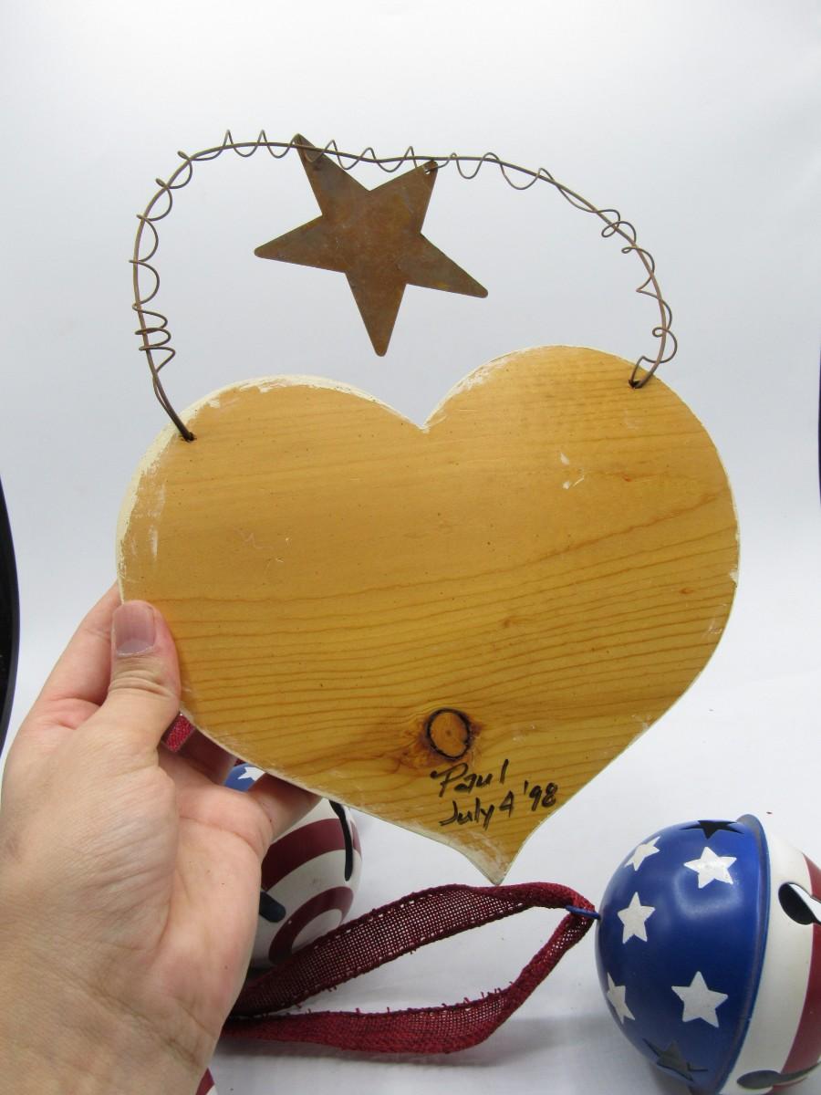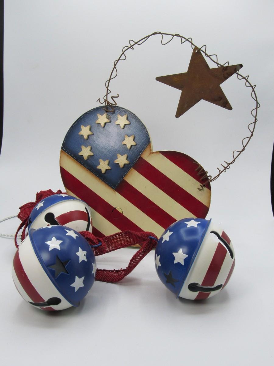 Fourth of July Decorations Lot Red White & Blue wall hanging and 3 painted bells