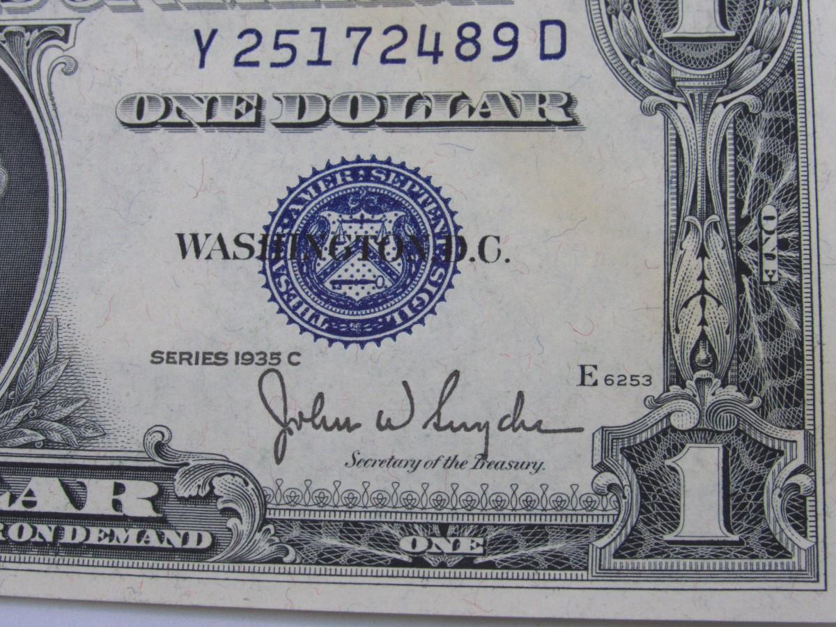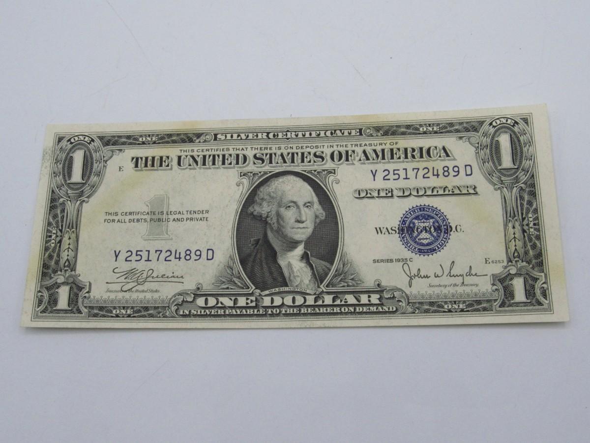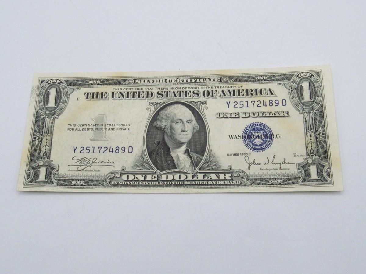 Series 1935 C $1.00 Bill Silver Certificate U.S. Blue Seal Bank Note