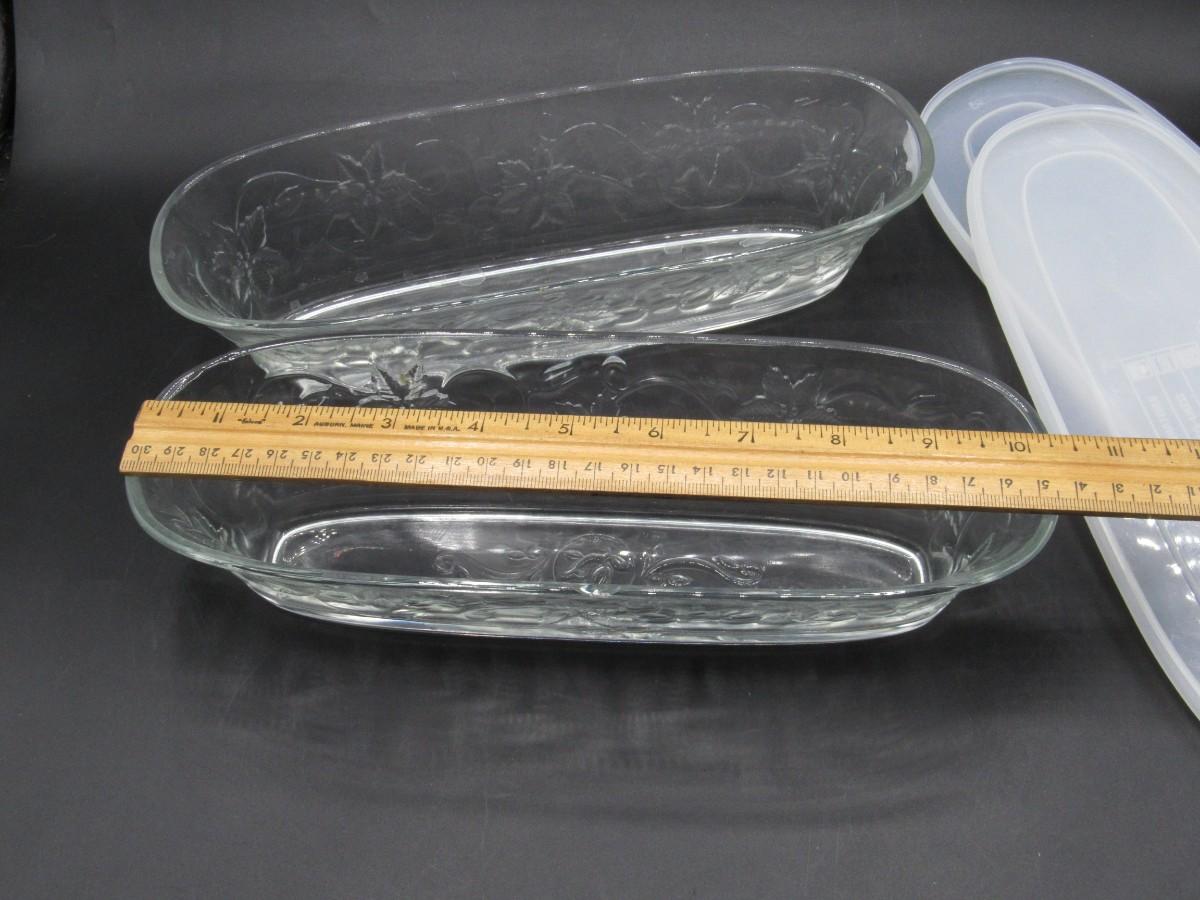 Princess House Crystal Fantasia Glass Serving Dishes with Lids Oval