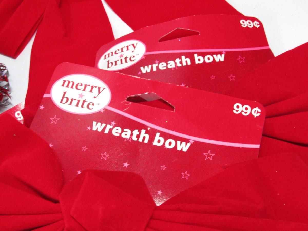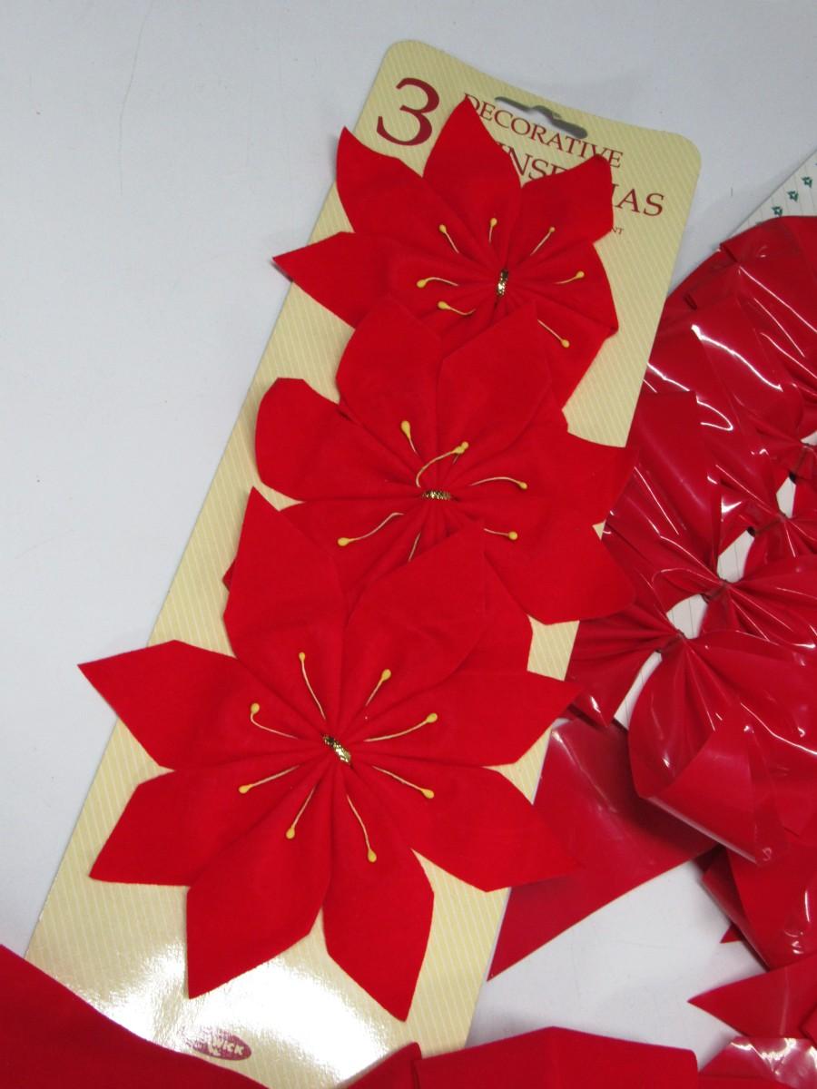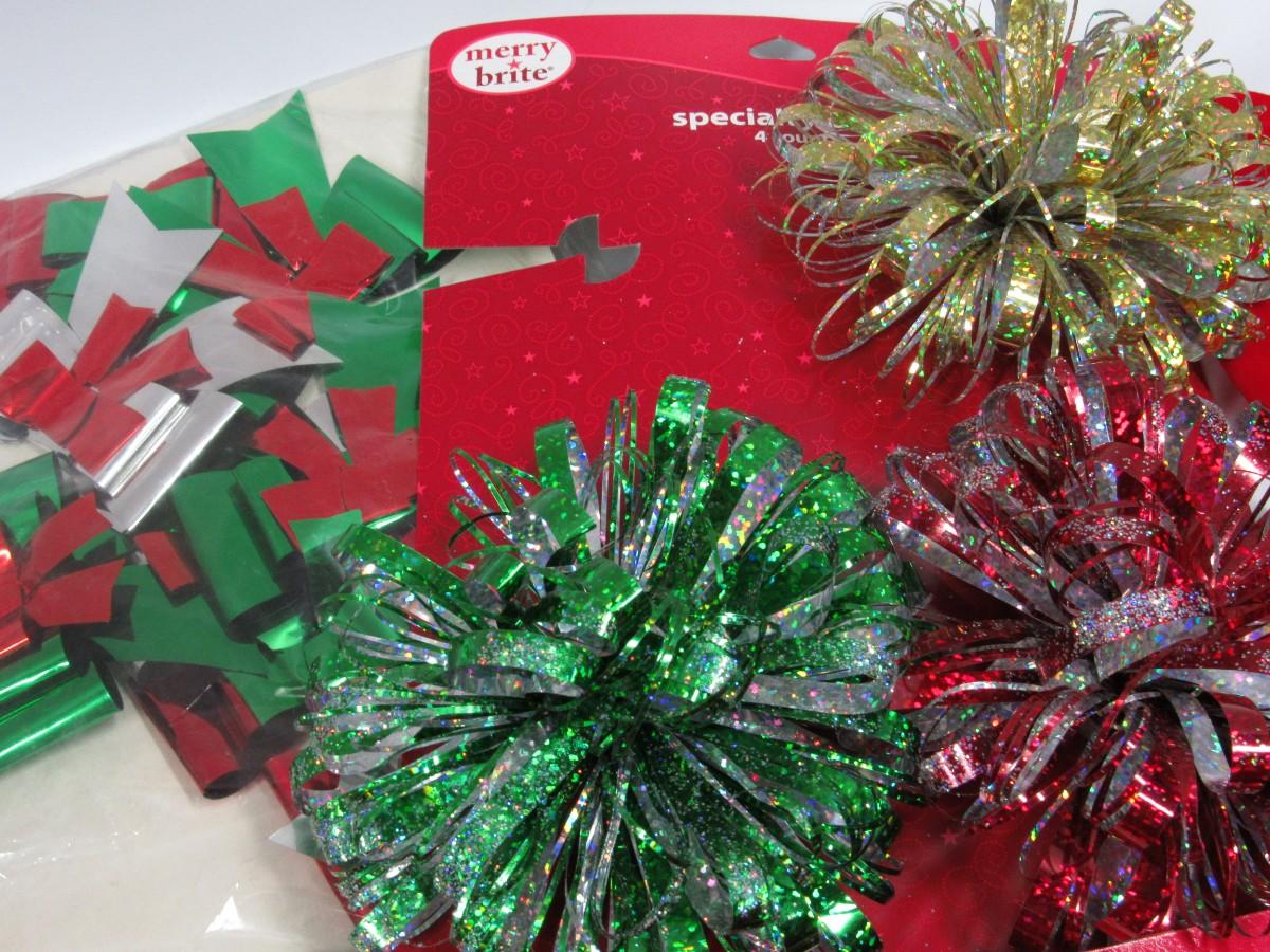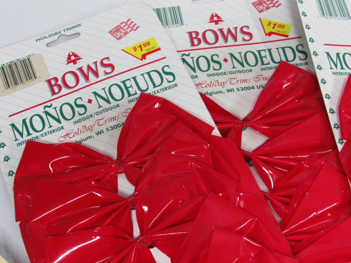 In mostly new condition. Many red wreath bows, along with other Christmas decorative items. See photos for what's included.