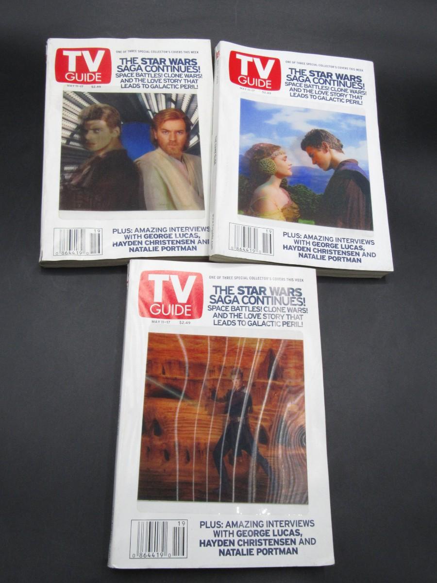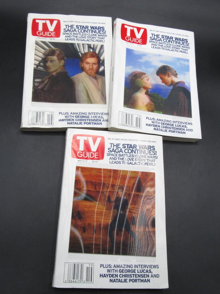 Set of 3 Vintage Star Wars TV Guides Hologram 3D May 11th-17th 2002