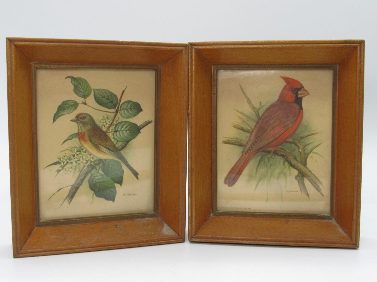 Pair of Vintage Framed Donald Art Co Ph. Gonner Litho in USA Bird Art Prints