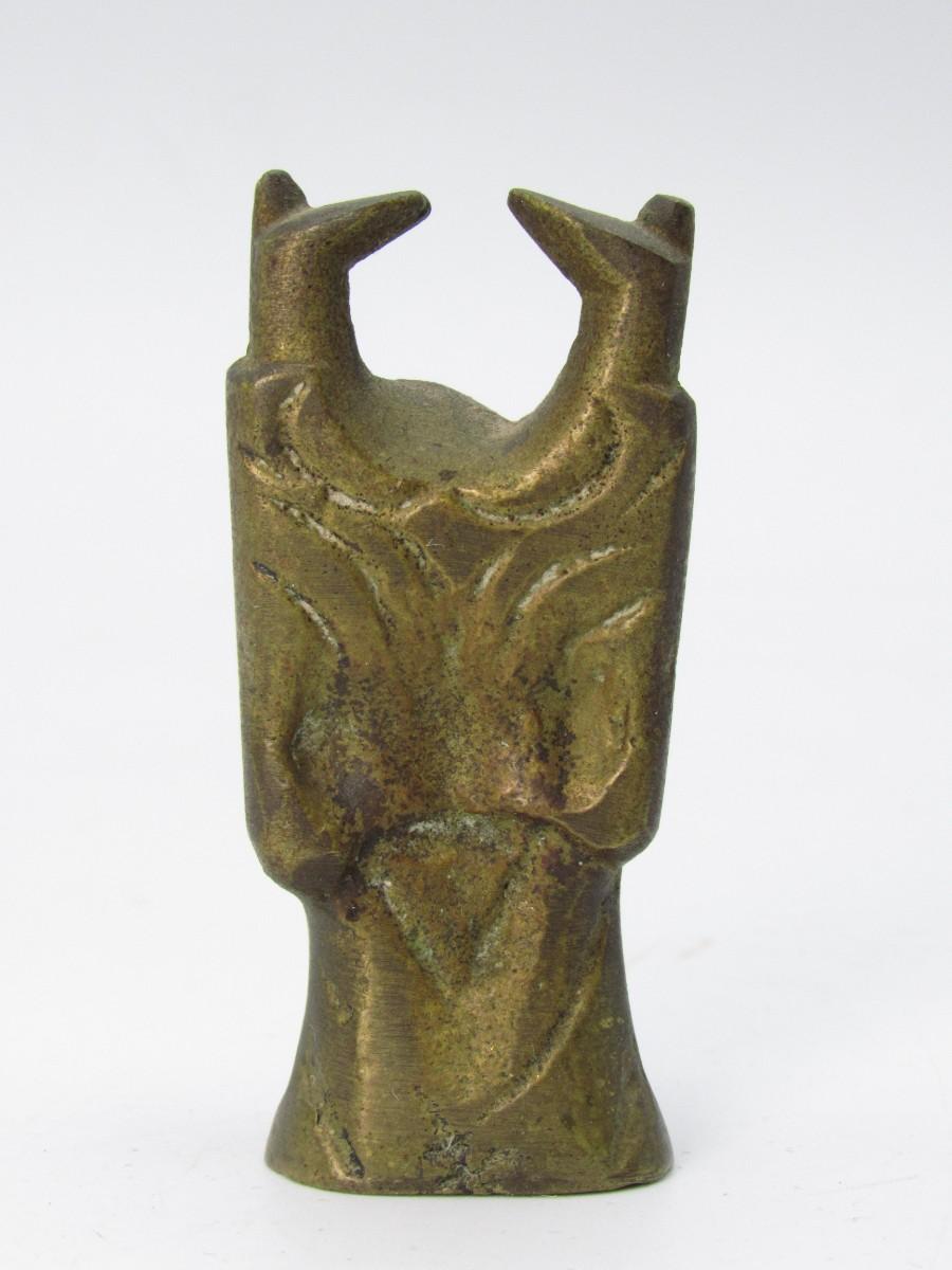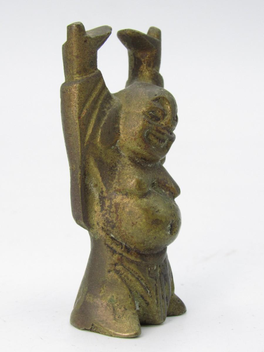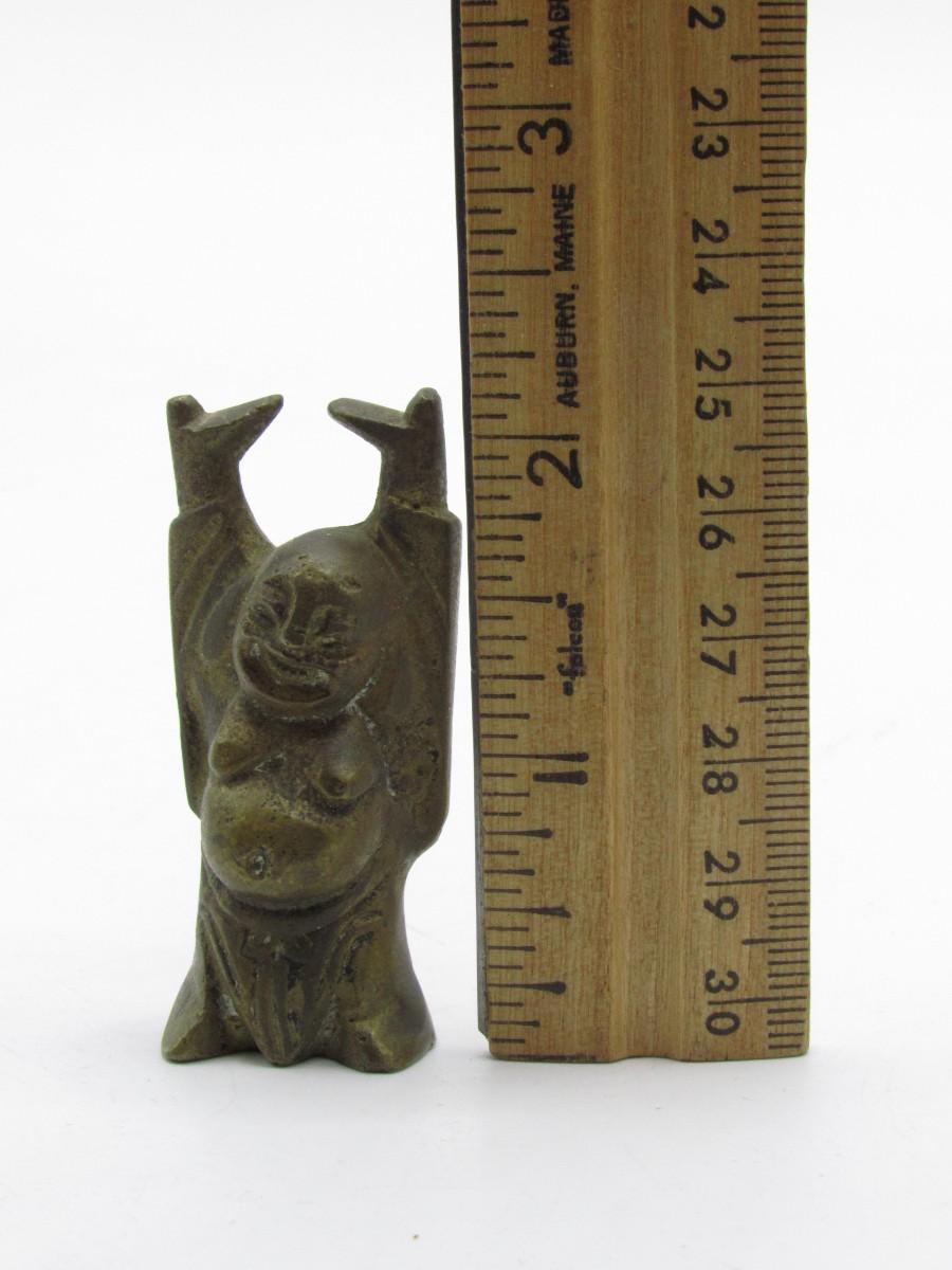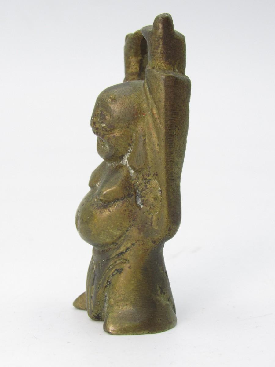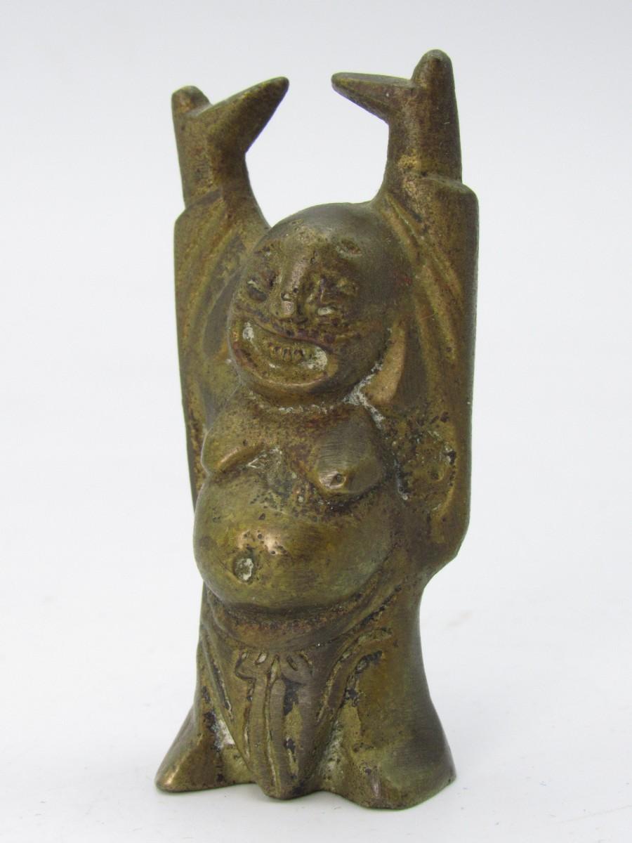 Small Vintage Brass Metal Buddha Laughing Both Hands Up Holding Position Figurine