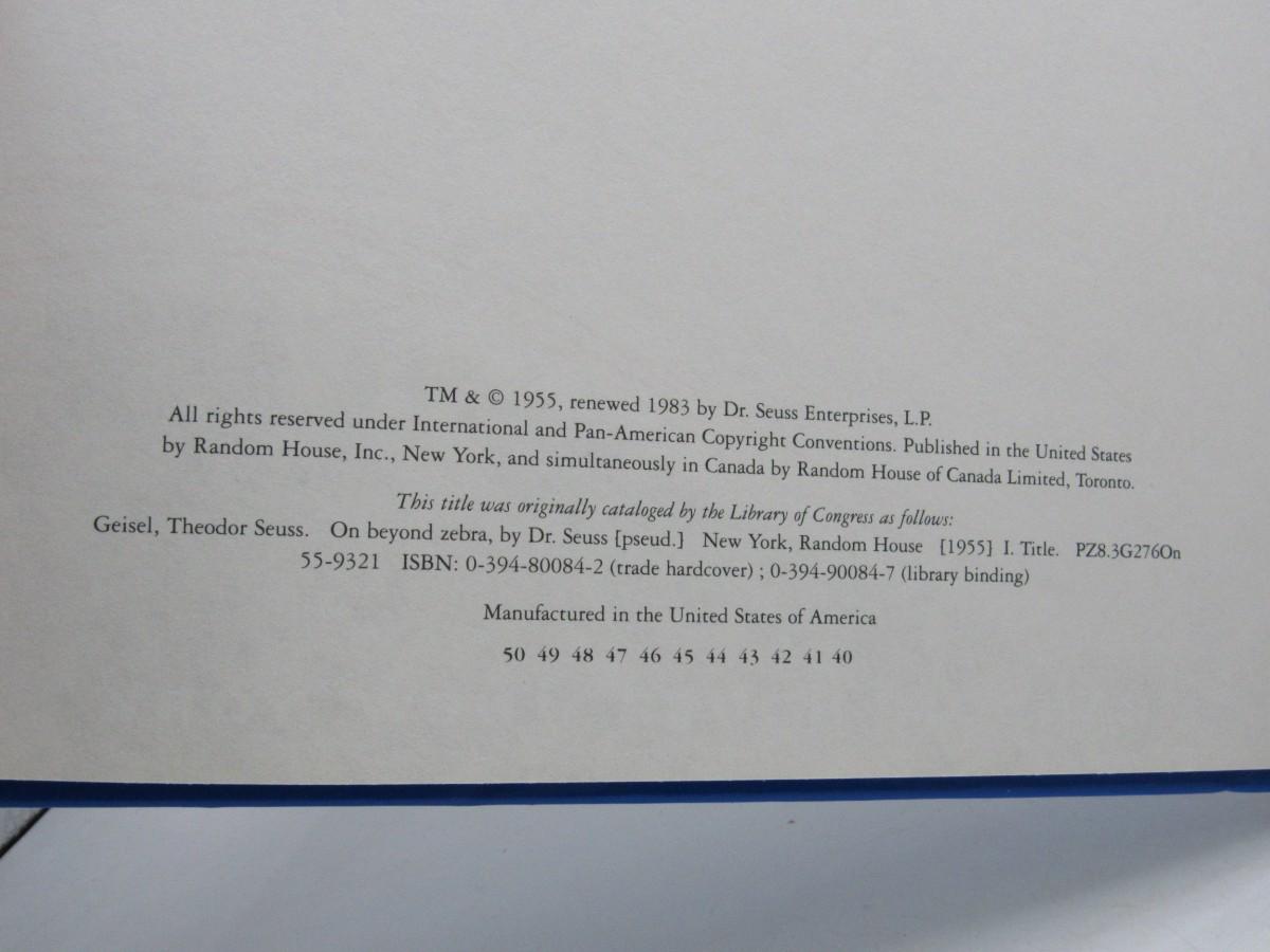 On Beyond Zebra! Dr. Seuss Hardcover Rare Classic 1955 Renewed 1983 Book Club Edition
