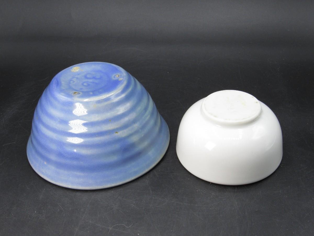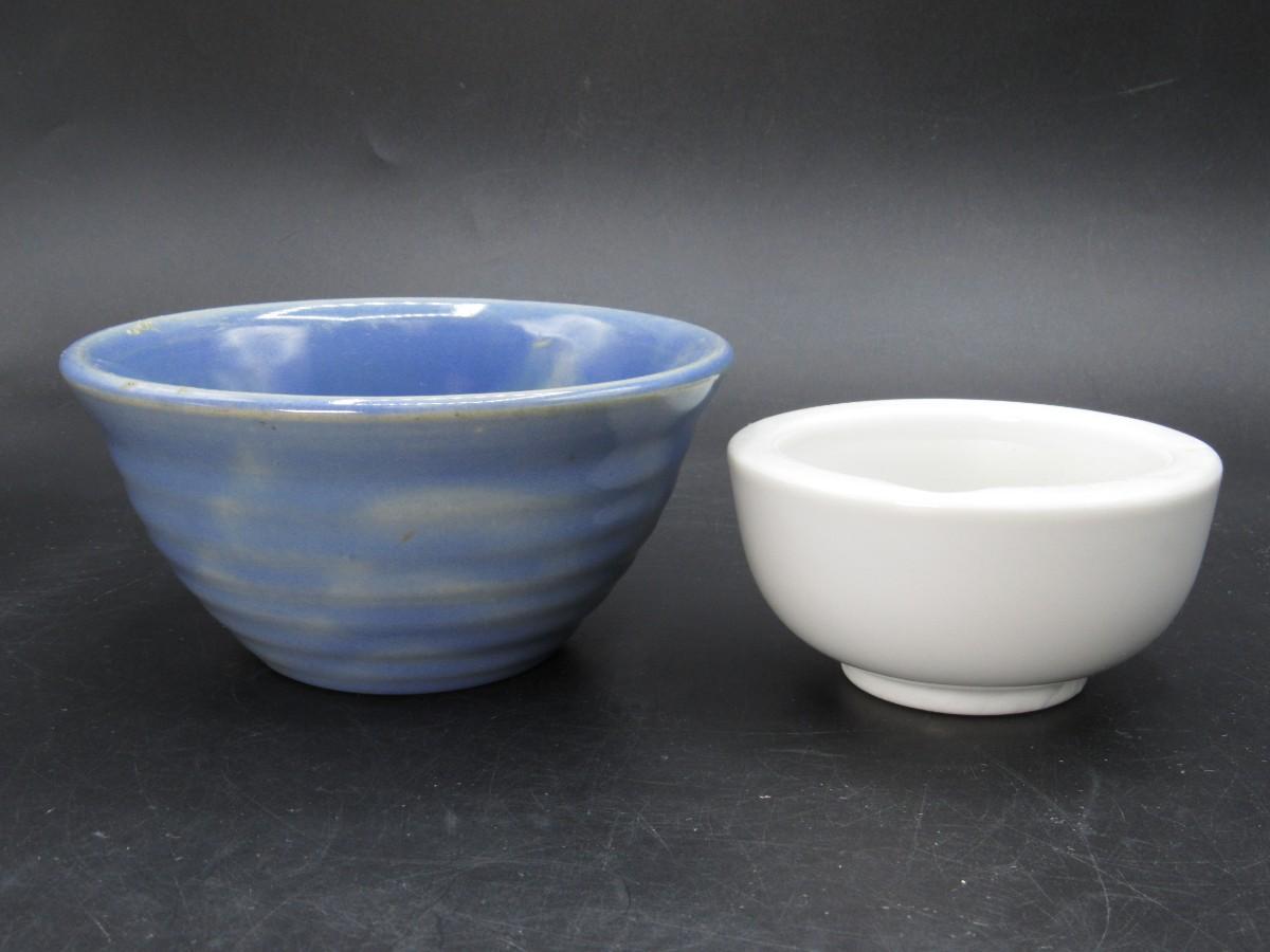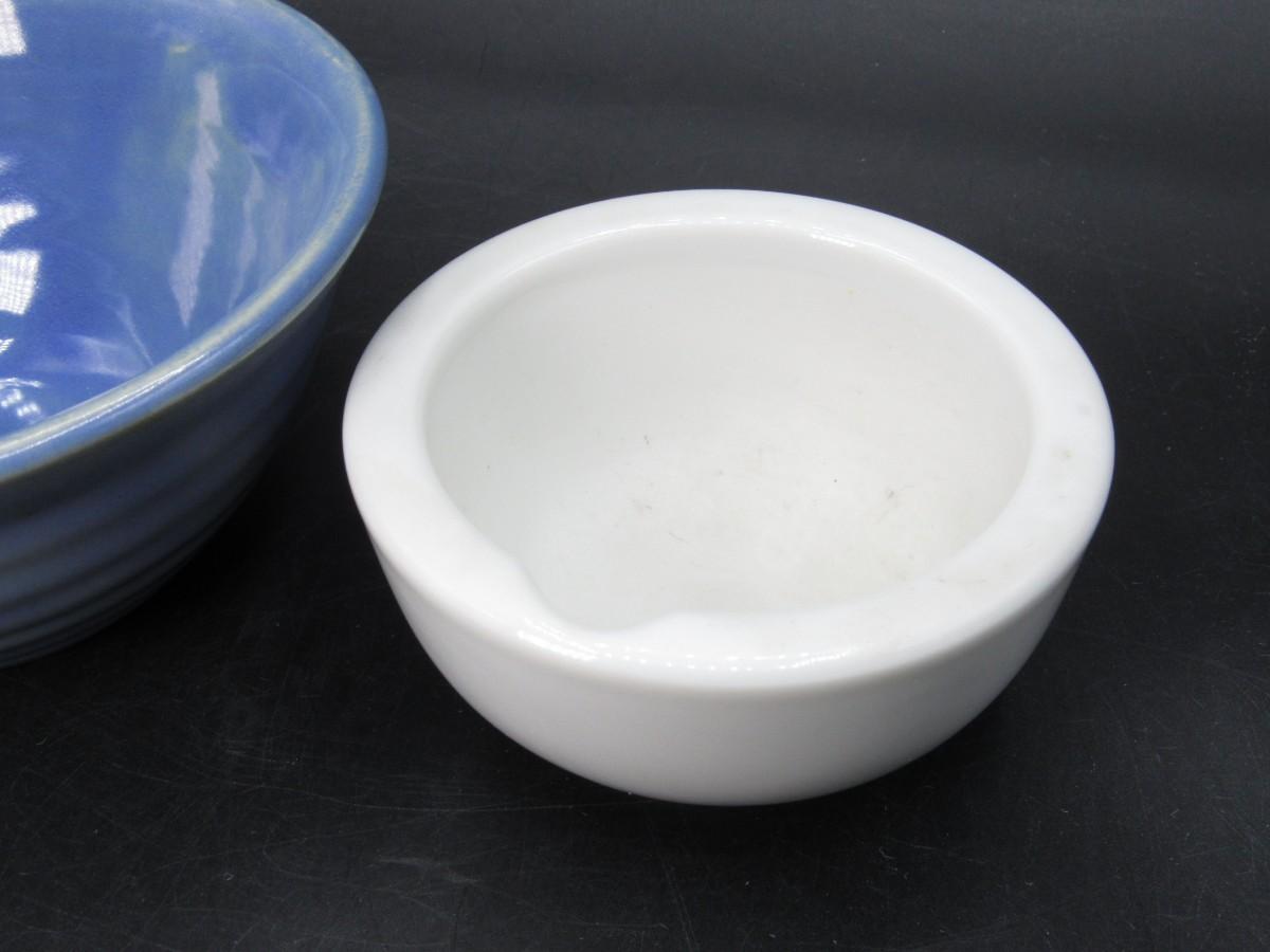 Small Blue Beehive Bauer and white marble Mortar without Pestle