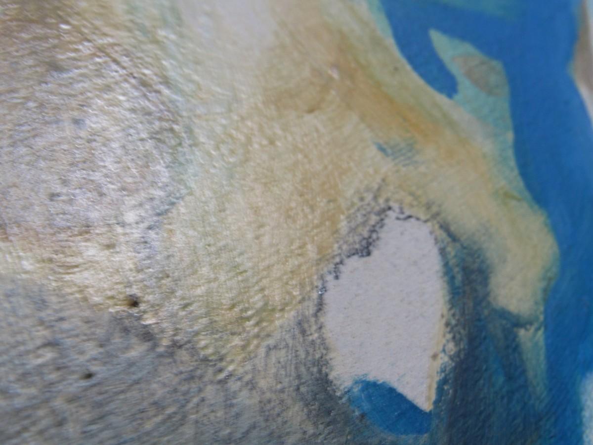 There is no damage to the canvas and is in good displayable condition. Check pictures for more details.