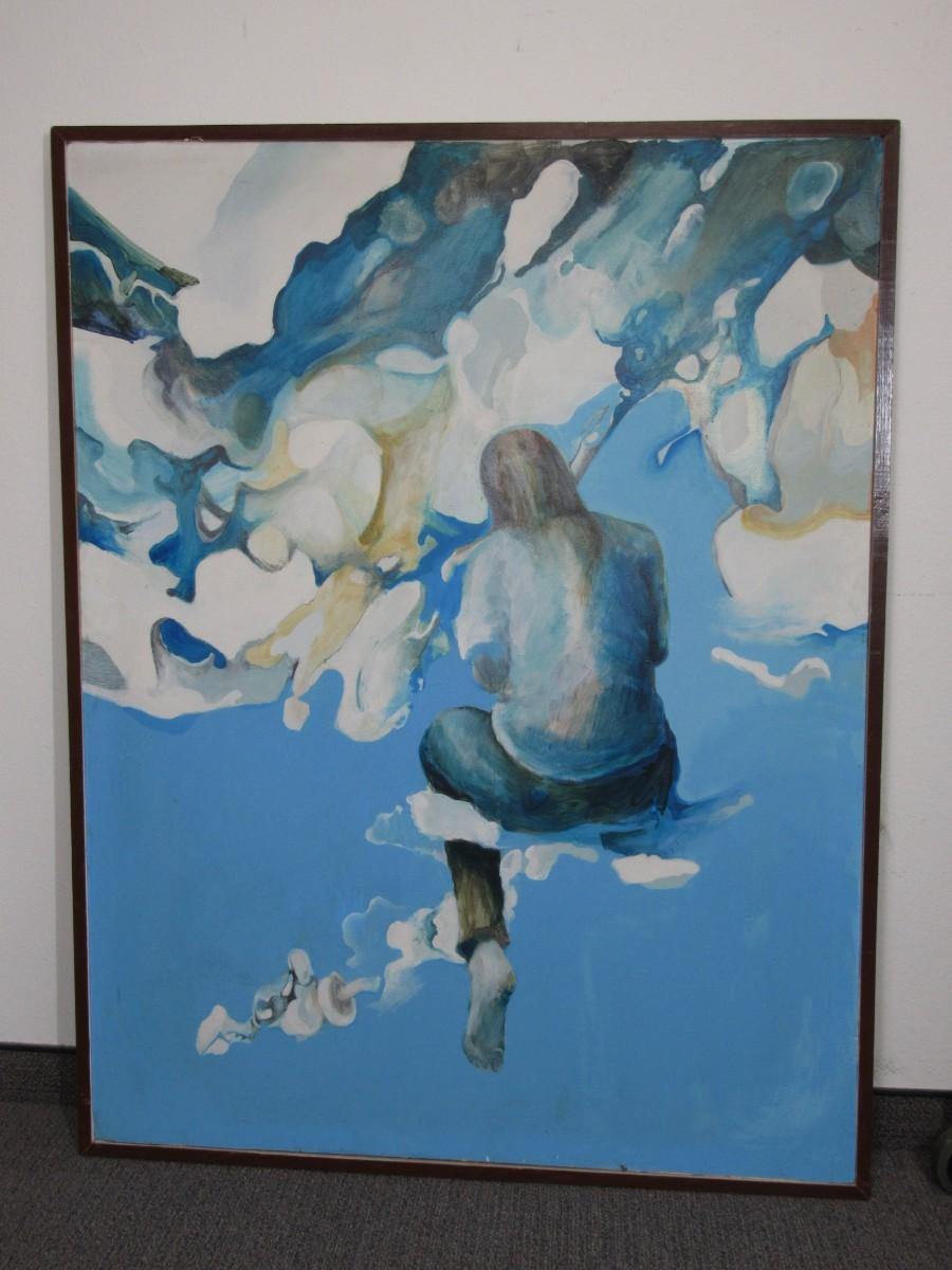 Large Original Vintage 1968 Oil Abstract Modernist Painting signed Robert Sumner