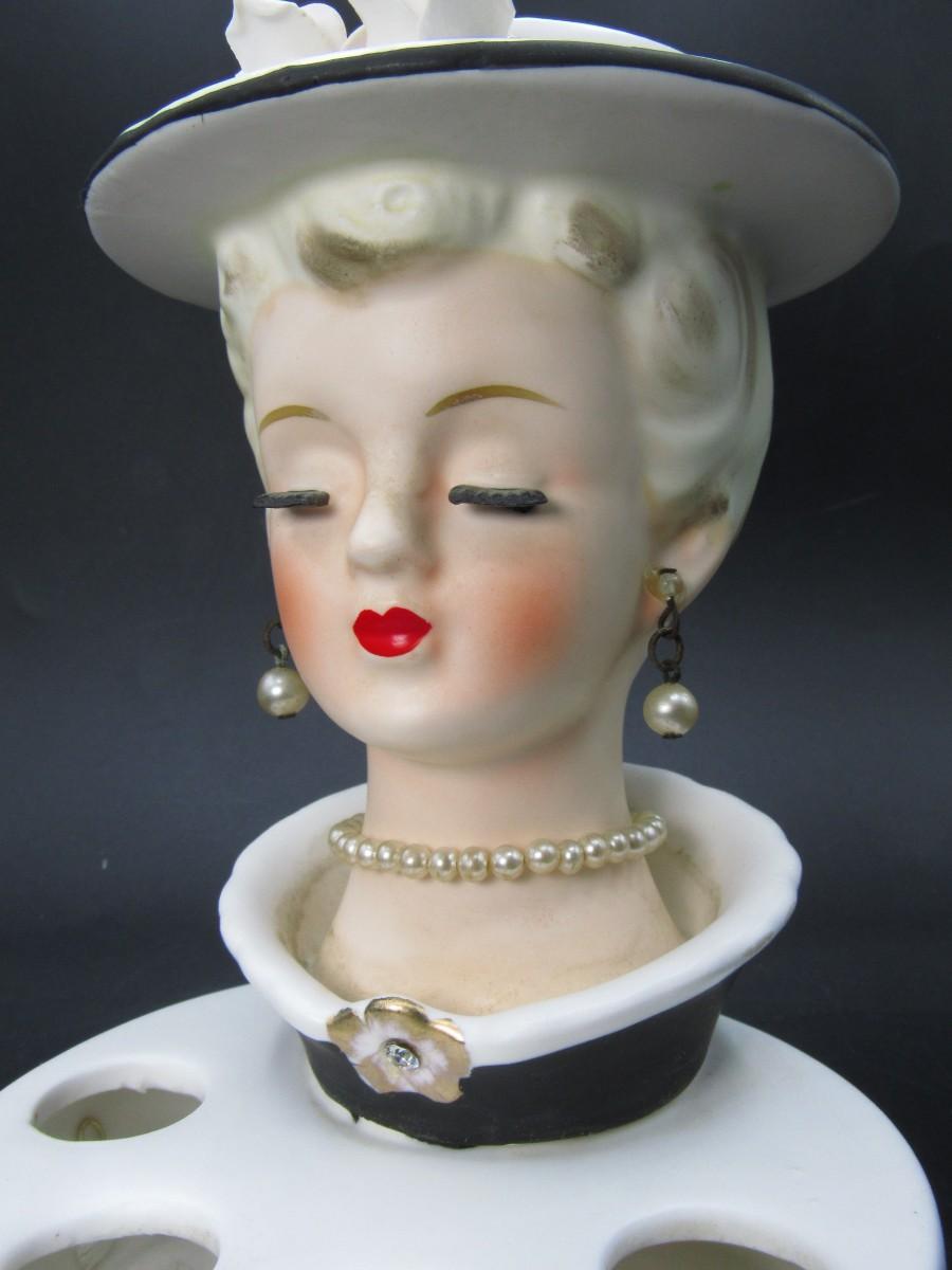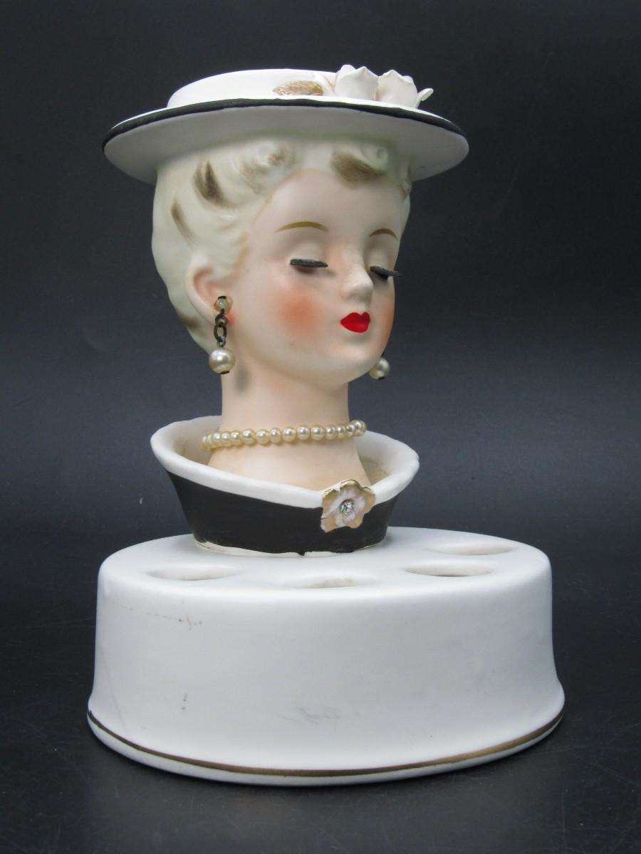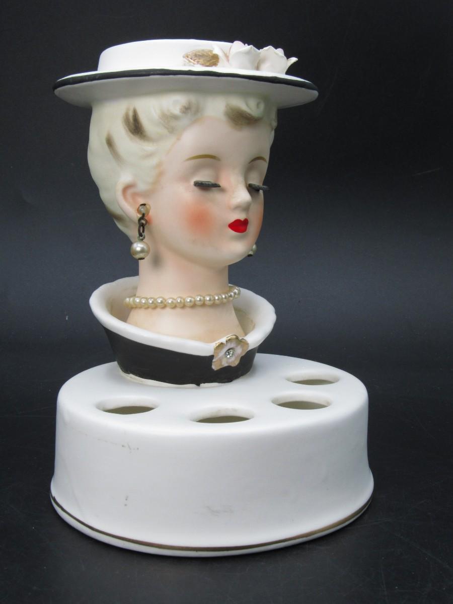 Vintage Lady Lipstick Holder Head Japan Ceramic Figurine Napco?