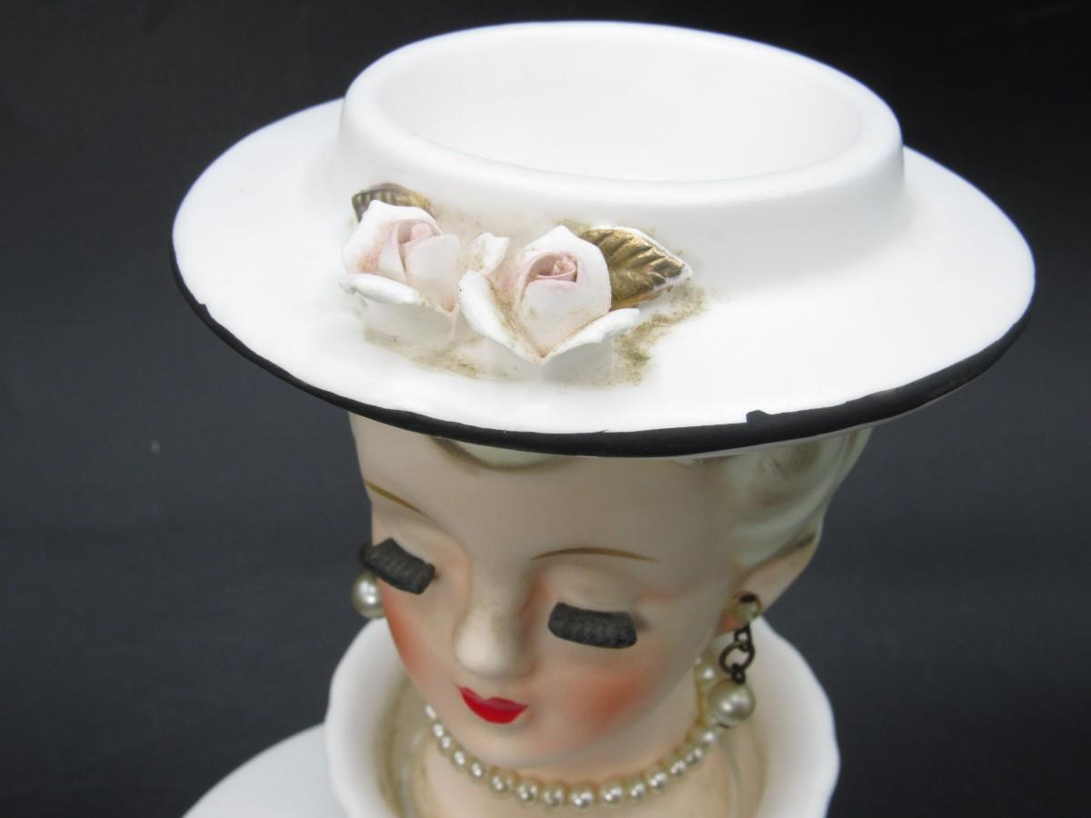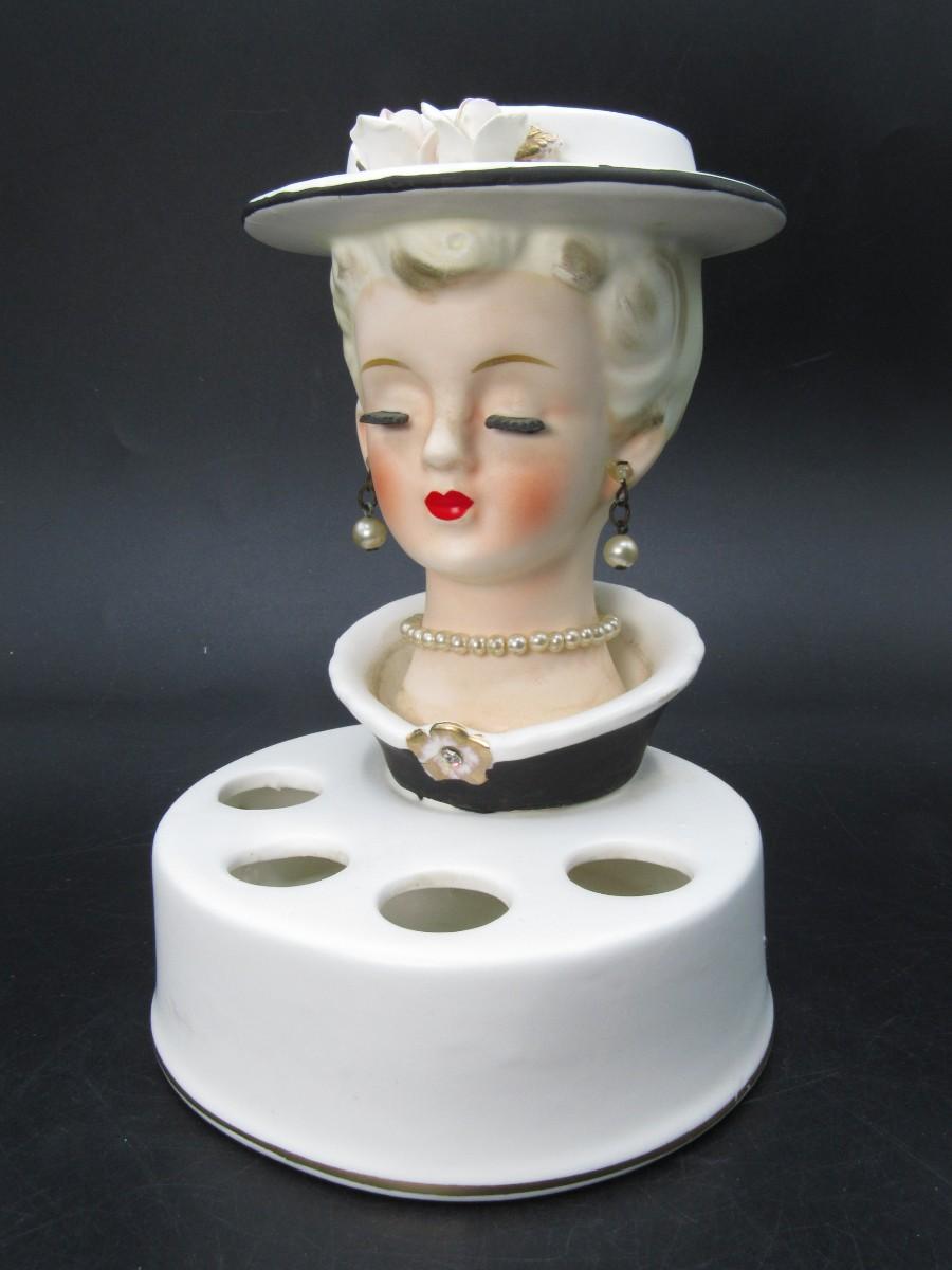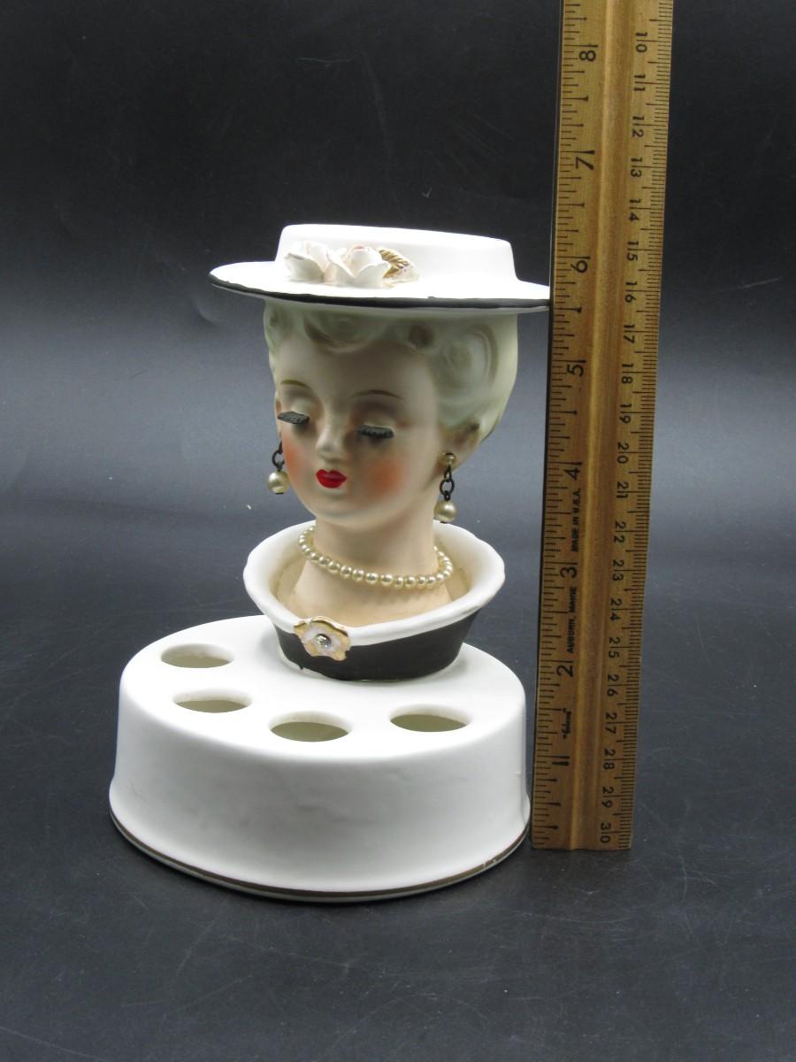 Vintage Lady Lipstick Holder Head Japan Ceramic Figurine Napco?