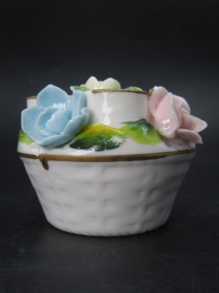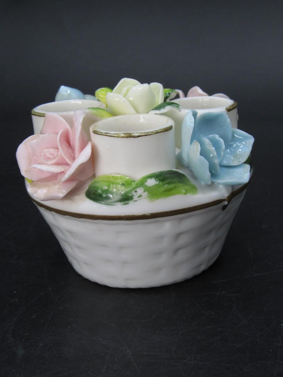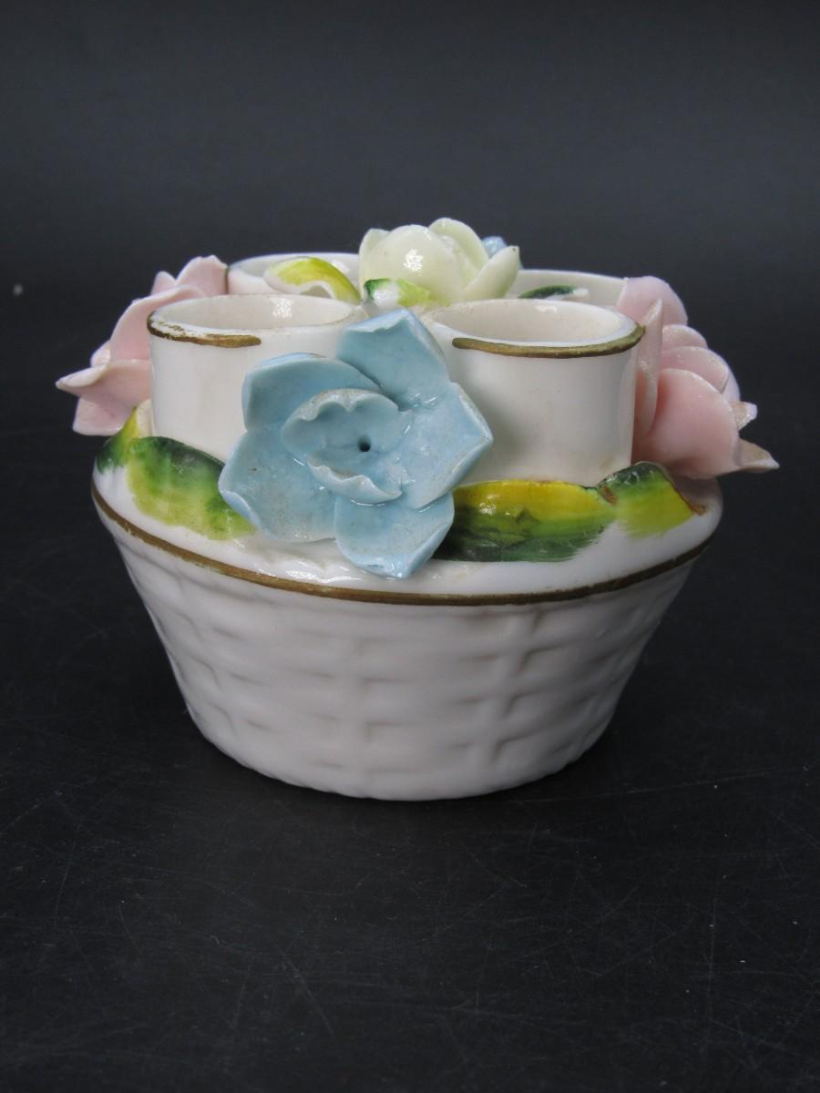 Vintage I.W. Rice & Co. Ceramic Vanity Flower Basket Lipstick Holder