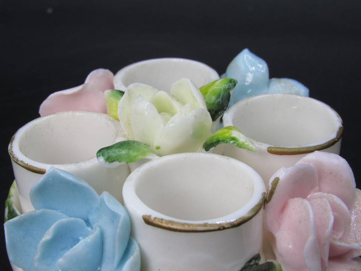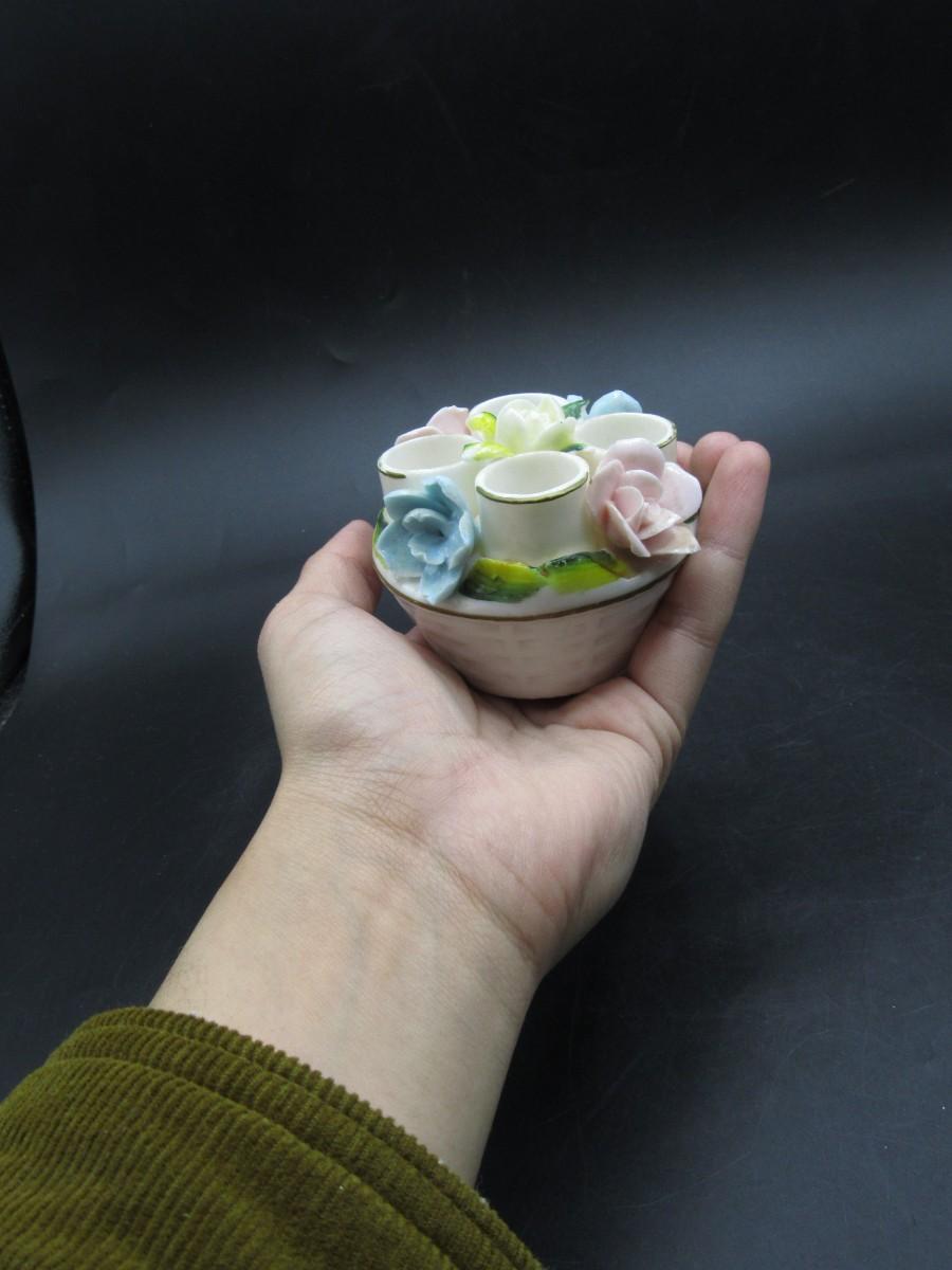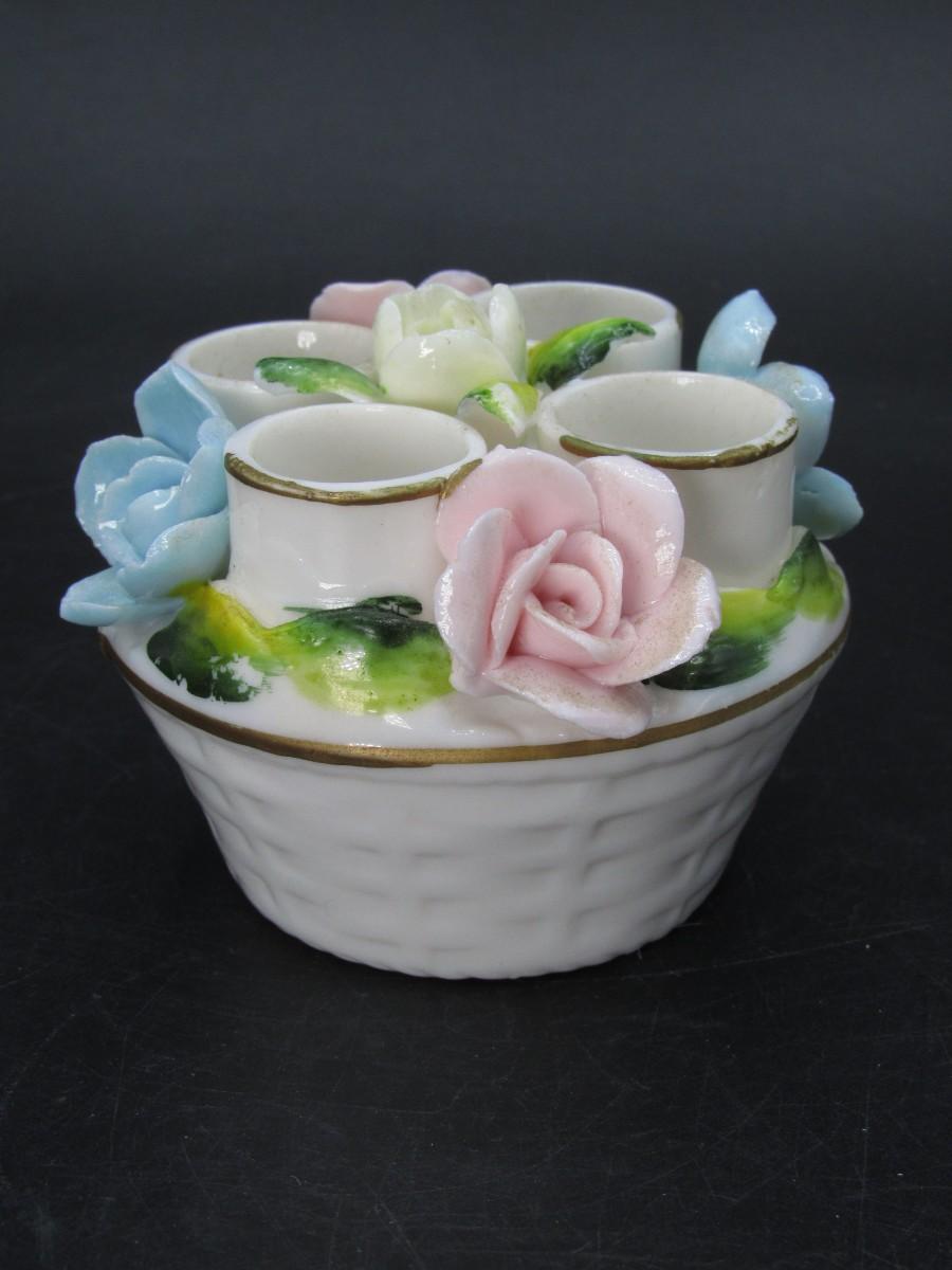 Vintage I.W. Rice & Co. Ceramic Vanity Flower Basket Lipstick Holder