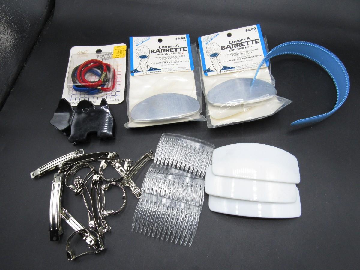 Lot of Hair Crafting Supplies Cover a Barrette, Ponytail Holders, More