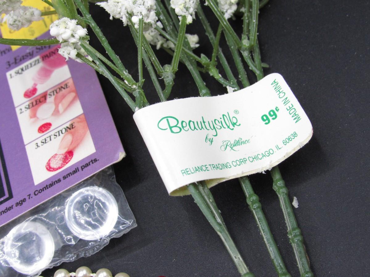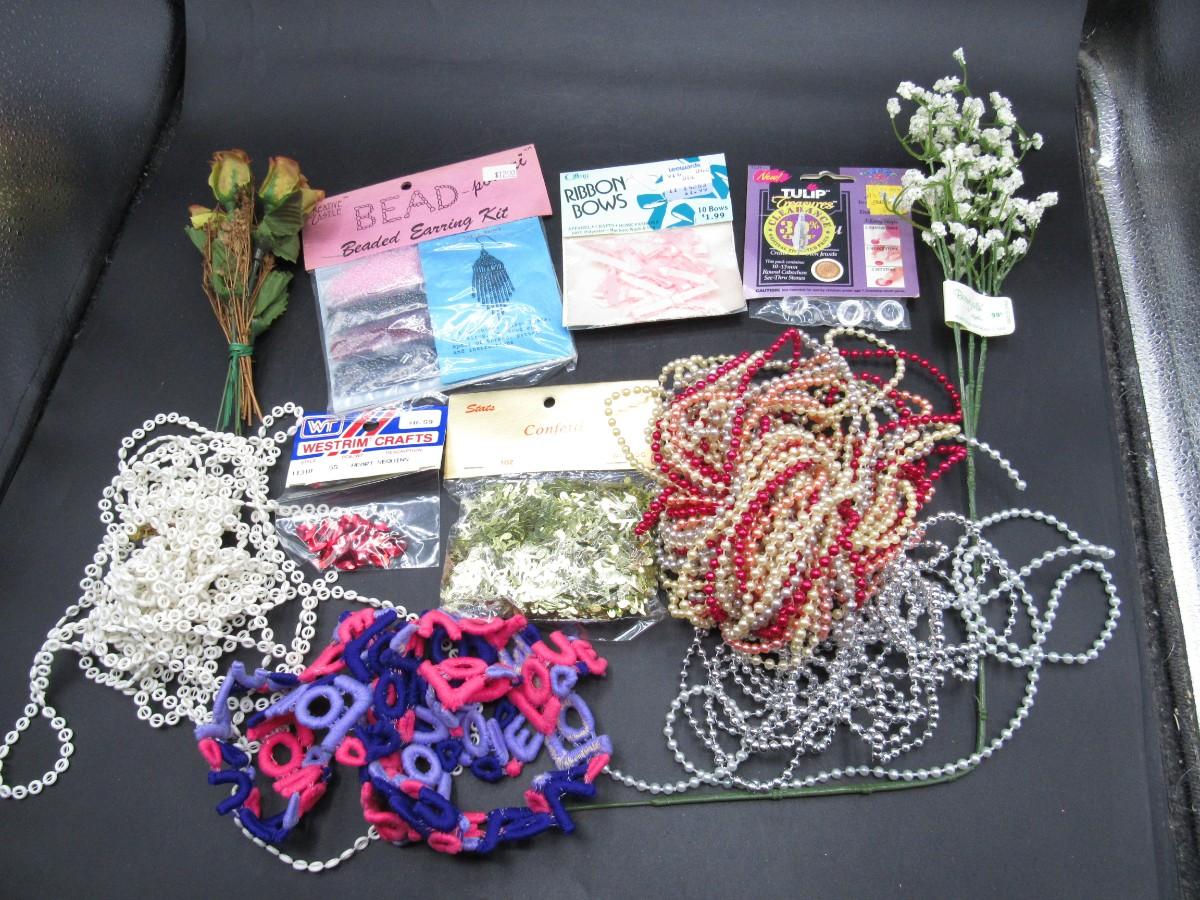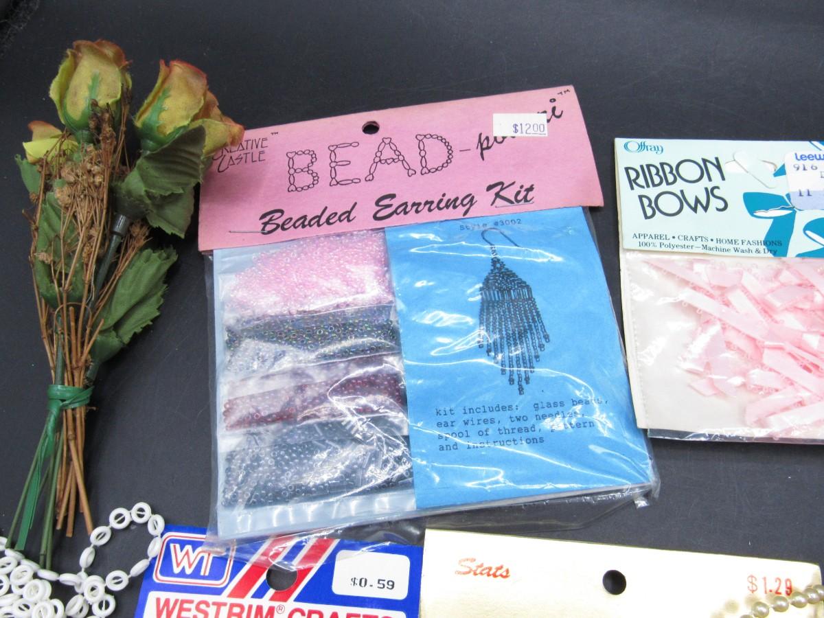 Lot of Retro Crafting Supplies Faux Flower Floral Arrangements, Confetti, Beads & More