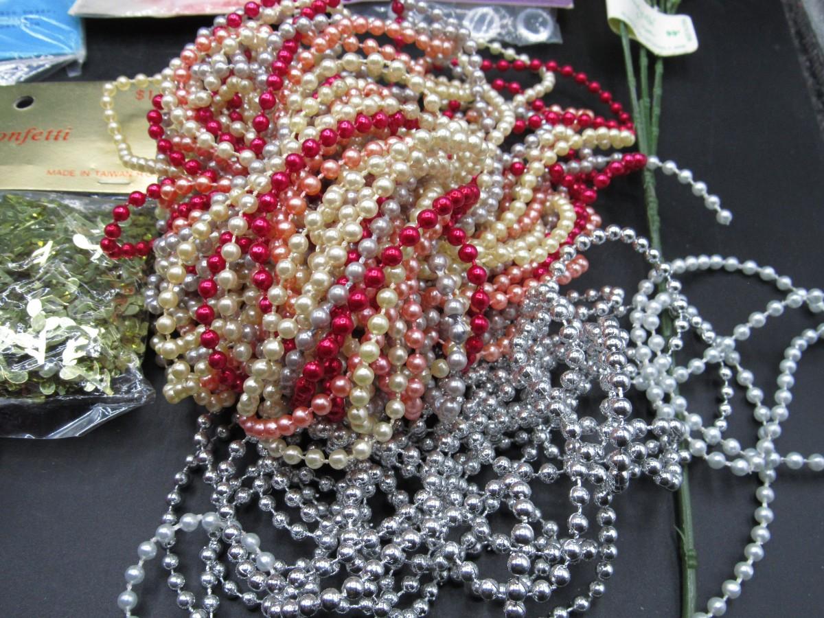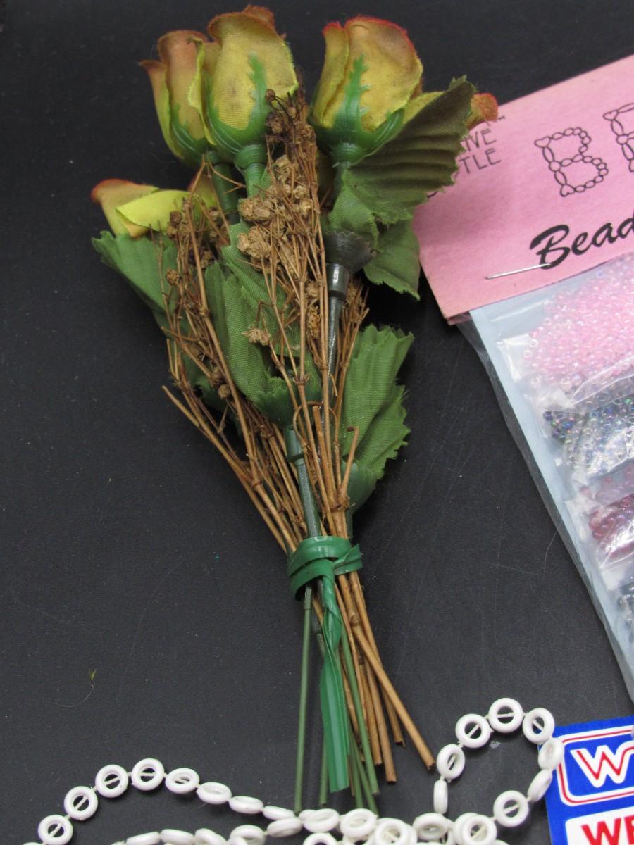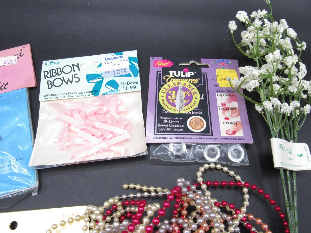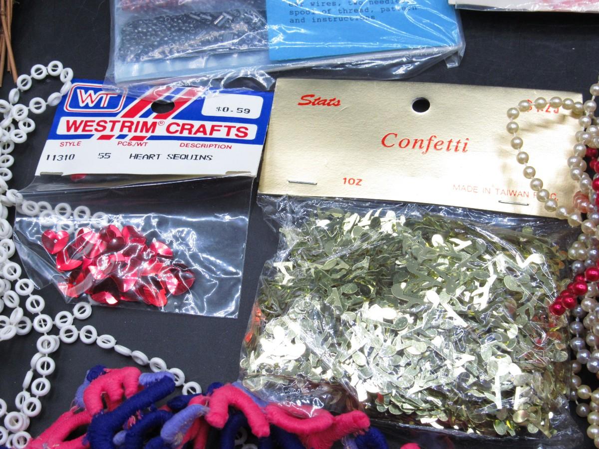 Lot of Retro Crafting Supplies Faux Flower Floral Arrangements, Confetti, Beads & More