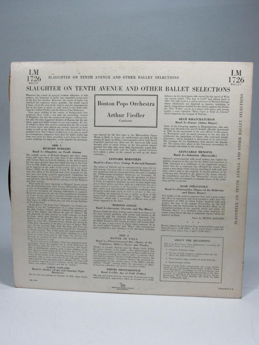 Vinyl Record 33 rpm Album Slaughter on 10th Avenue Pops Orchestra RCA Victor Record