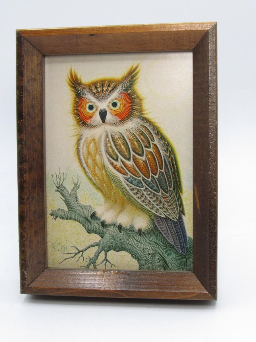 Small Vintage K Chin Art Print Psychedelic Owl Print