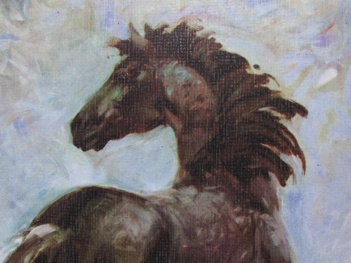 Small Vintage Impressionist Style Majestic Black Horse Hanging Art Print