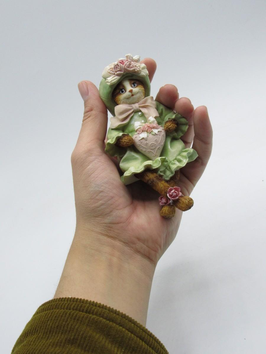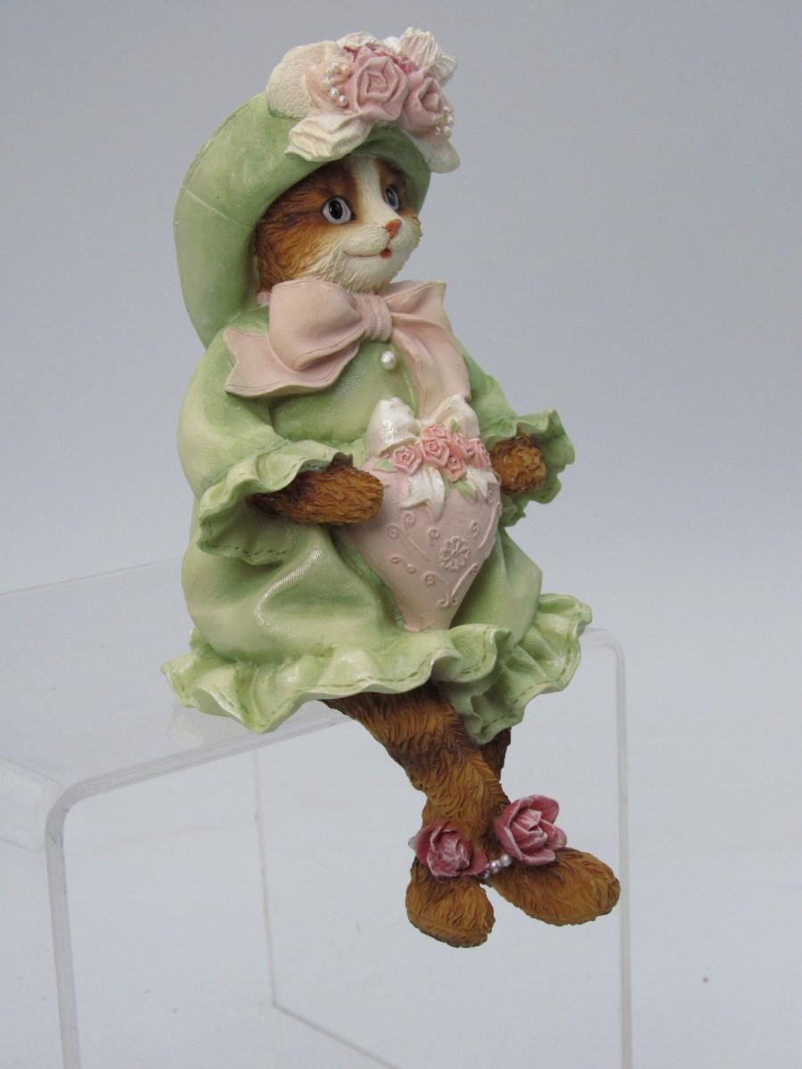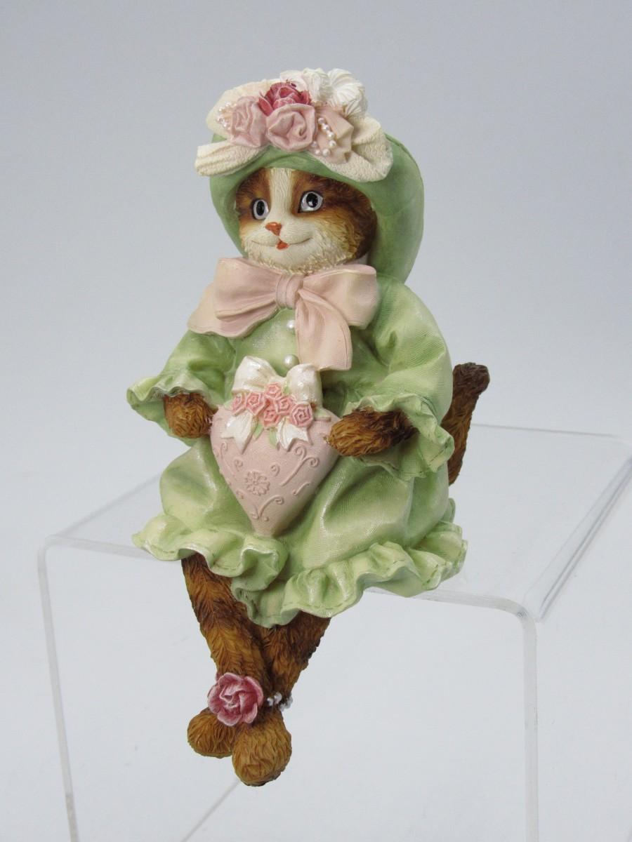 Cute Dressed Cat with Pink Heart Shelf Sitter Figurine
