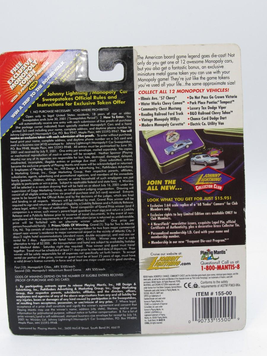 Monopoly Johnny Lighting Yellow Community Chest Mustang Toy Car in Box