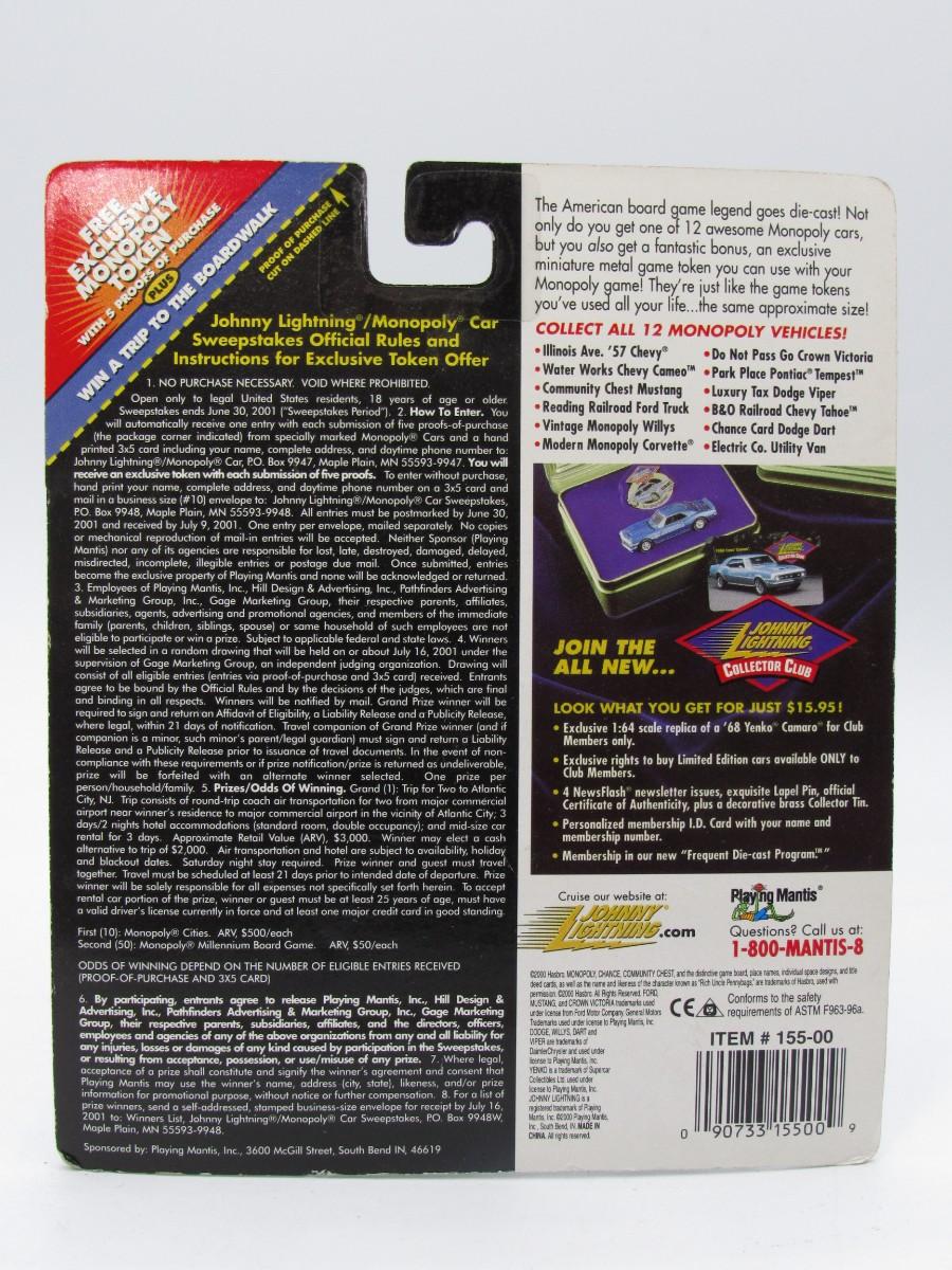 Monopoly Johnny Lighting Modern Monopoly Corvette Toy Car in Box