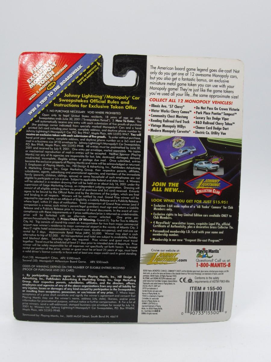 Monopoly Johnny Lighting Water Works Chevy Cameo Die Cast Toy Car in Box