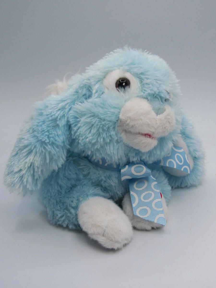 Plush Stuffed Animal Singing Blue Fluffy Bunny Rabbit with Bow
