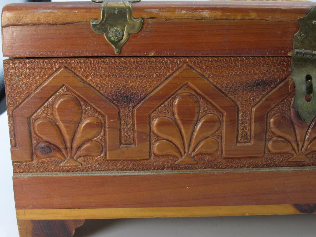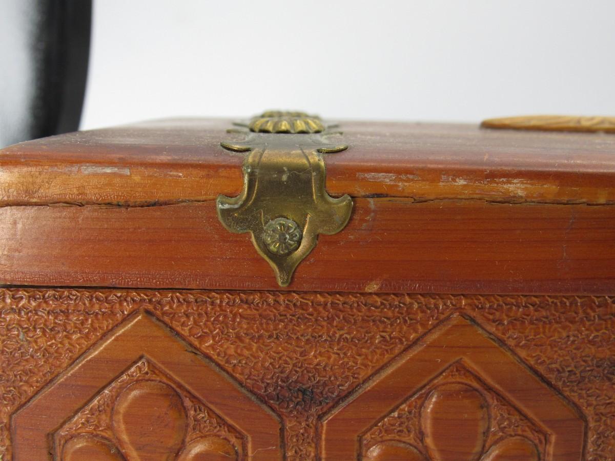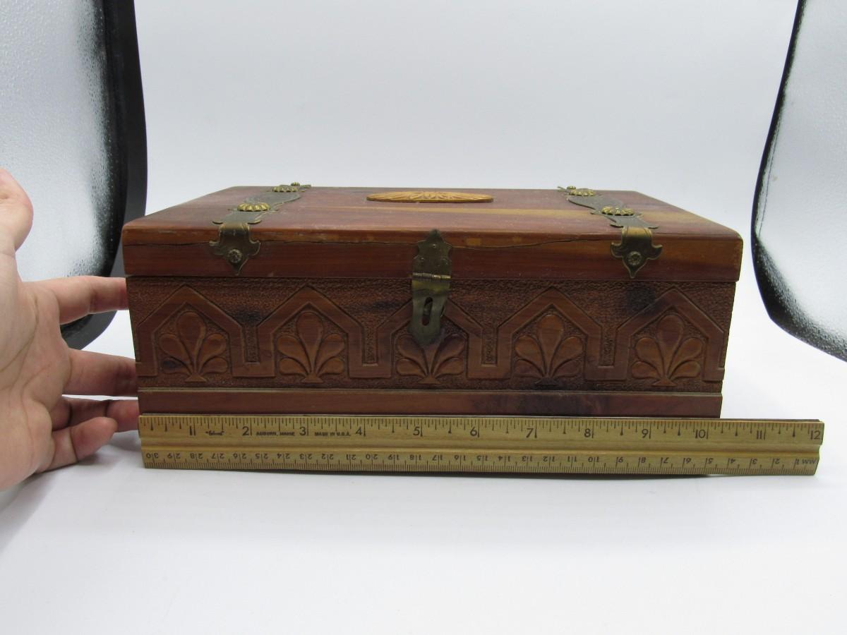 Vintage Mid Century Wooden Treasure Keepsake Hinged Box