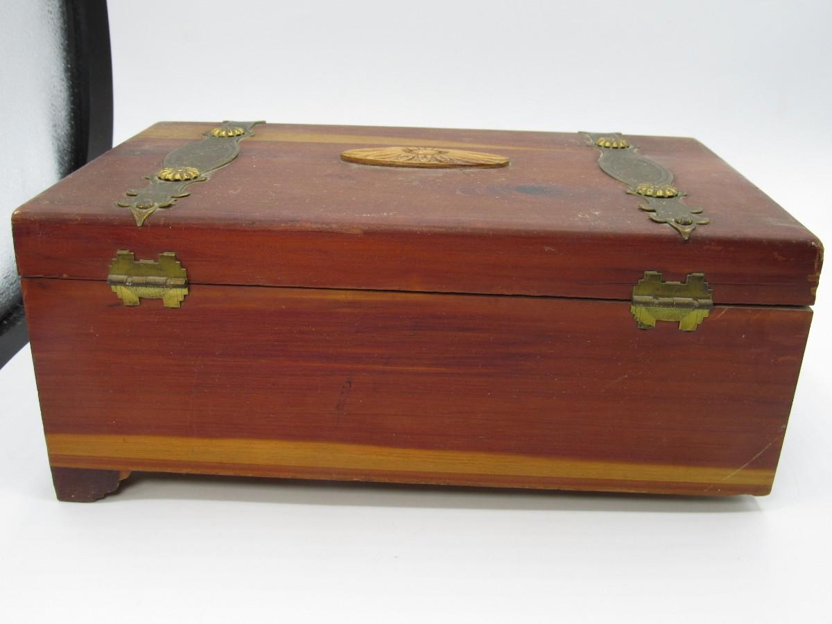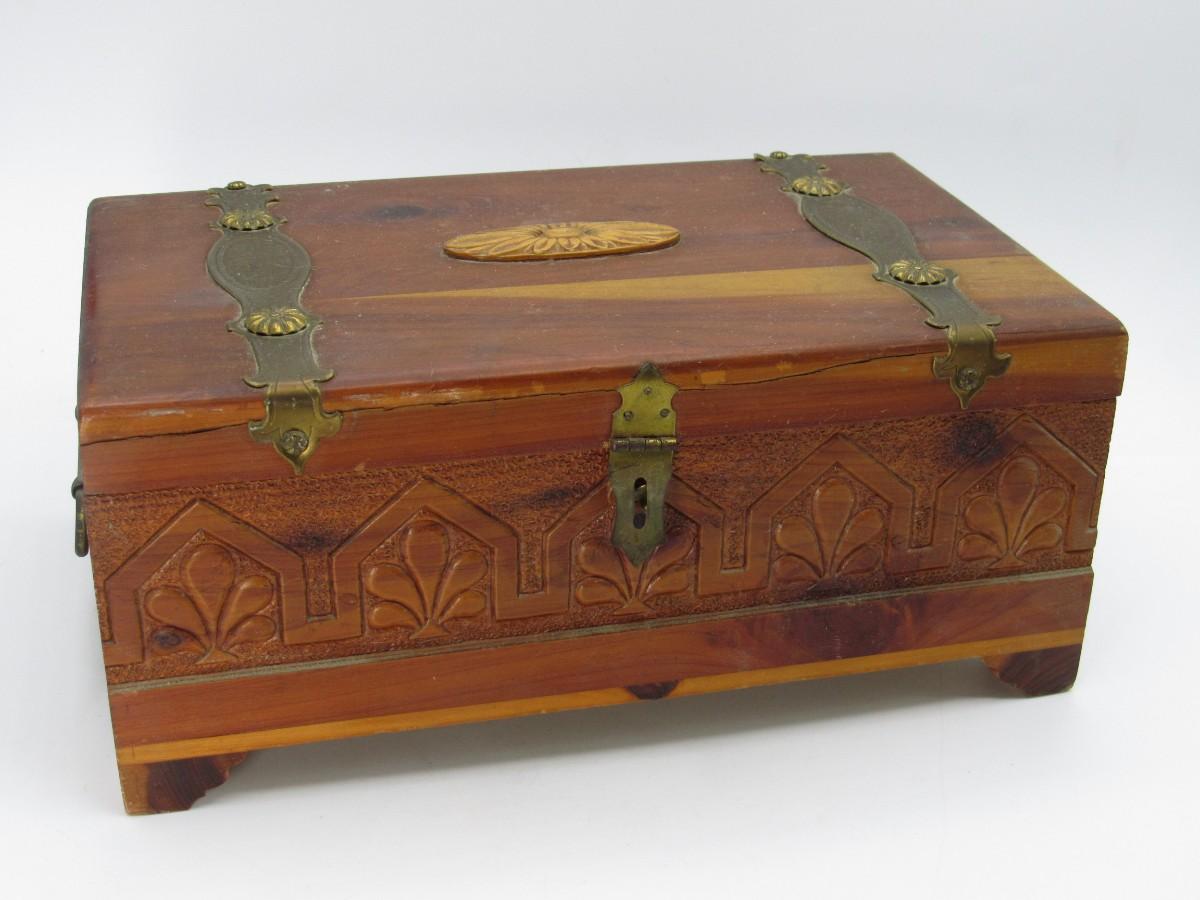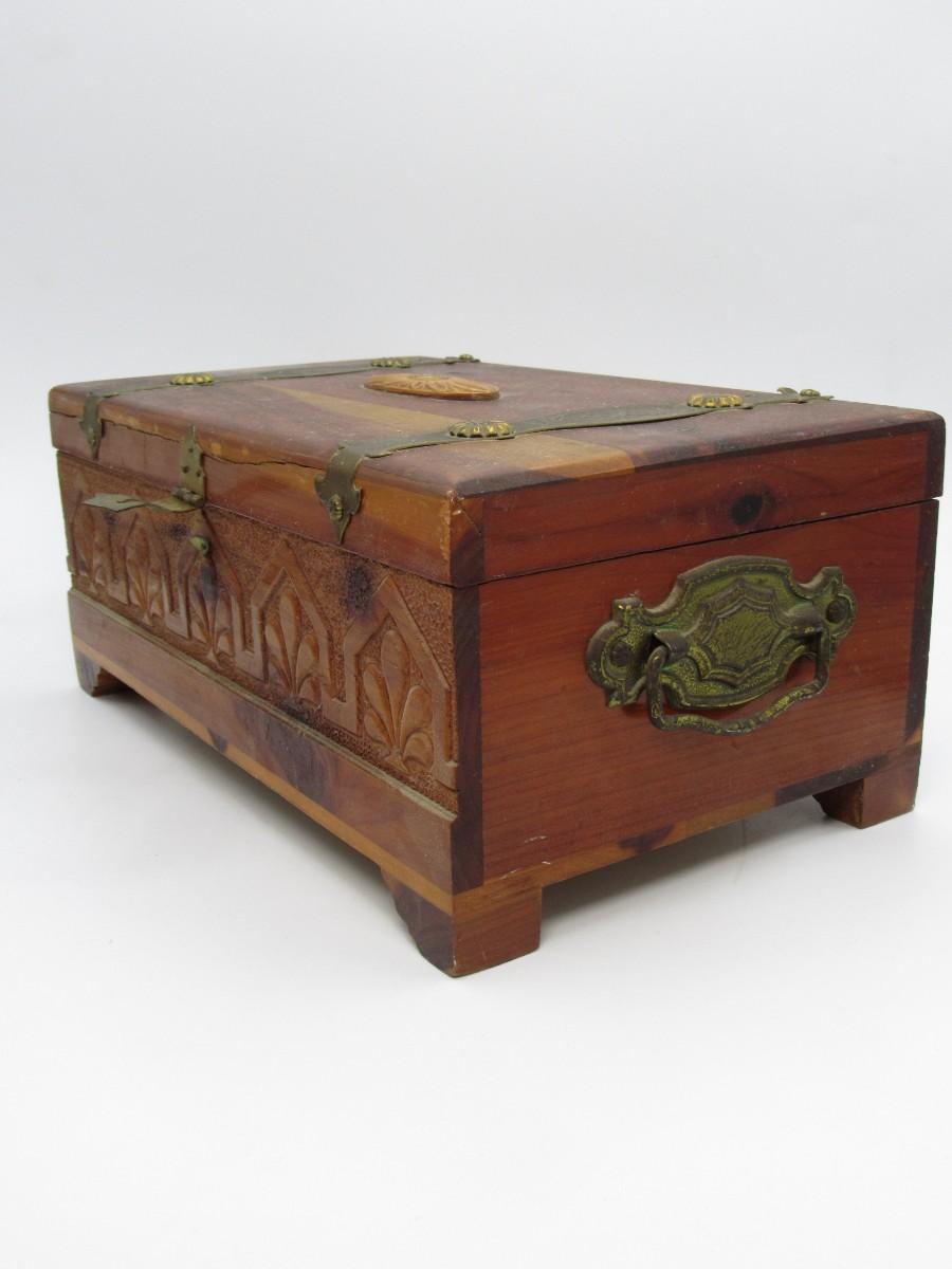 Vintage Mid Century Wooden Treasure Keepsake Hinged Box