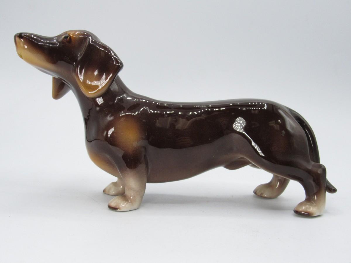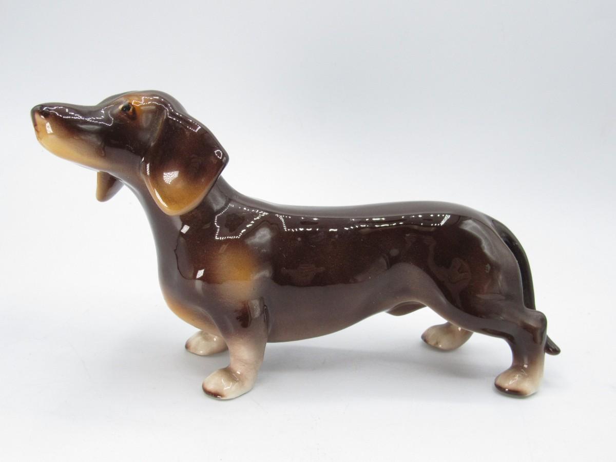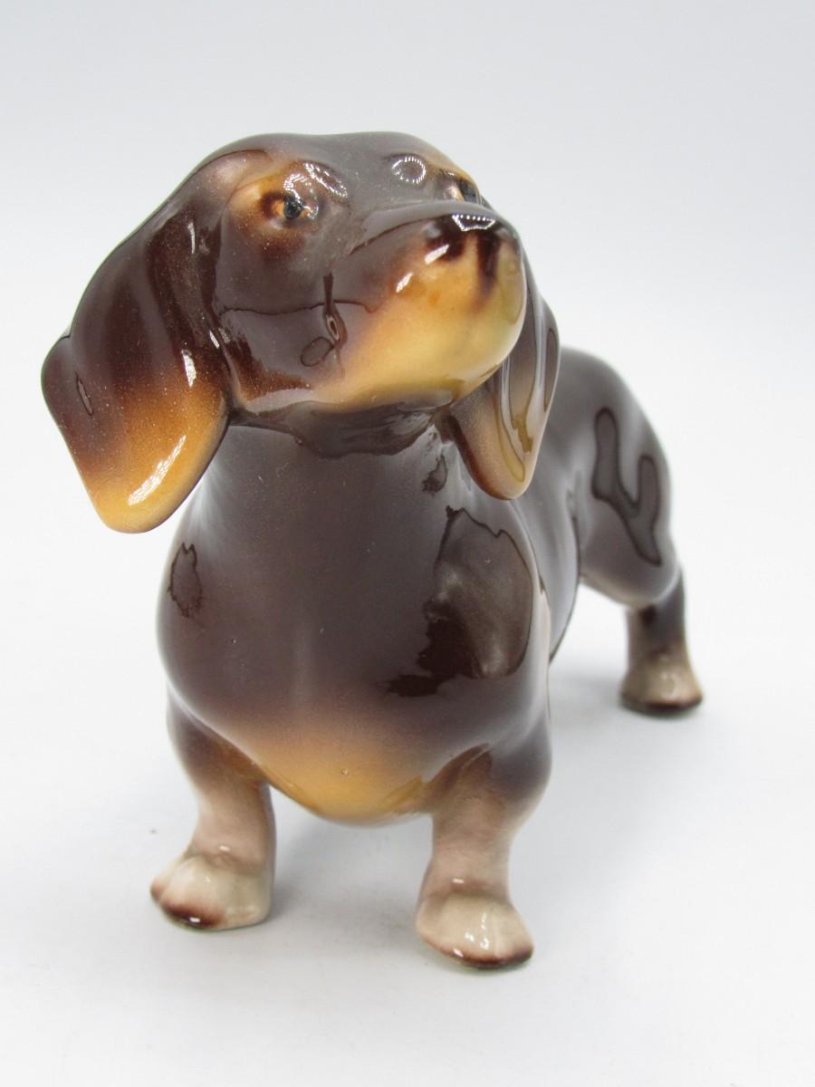 Vintage Ceramic Art Brown Dachshund Cute Wiener Dog Figurine