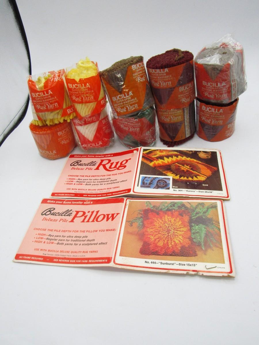 Lot of Rug Yarn Bucilla Super Spun Craft Materials and Crafting Pamphlets