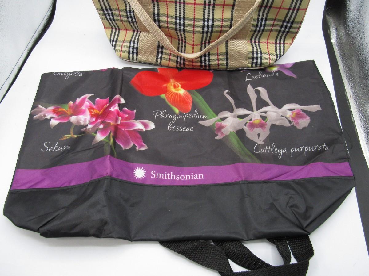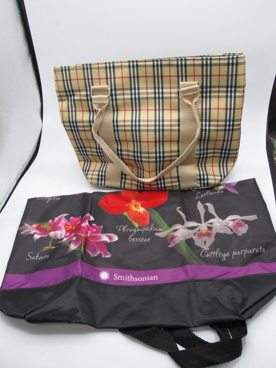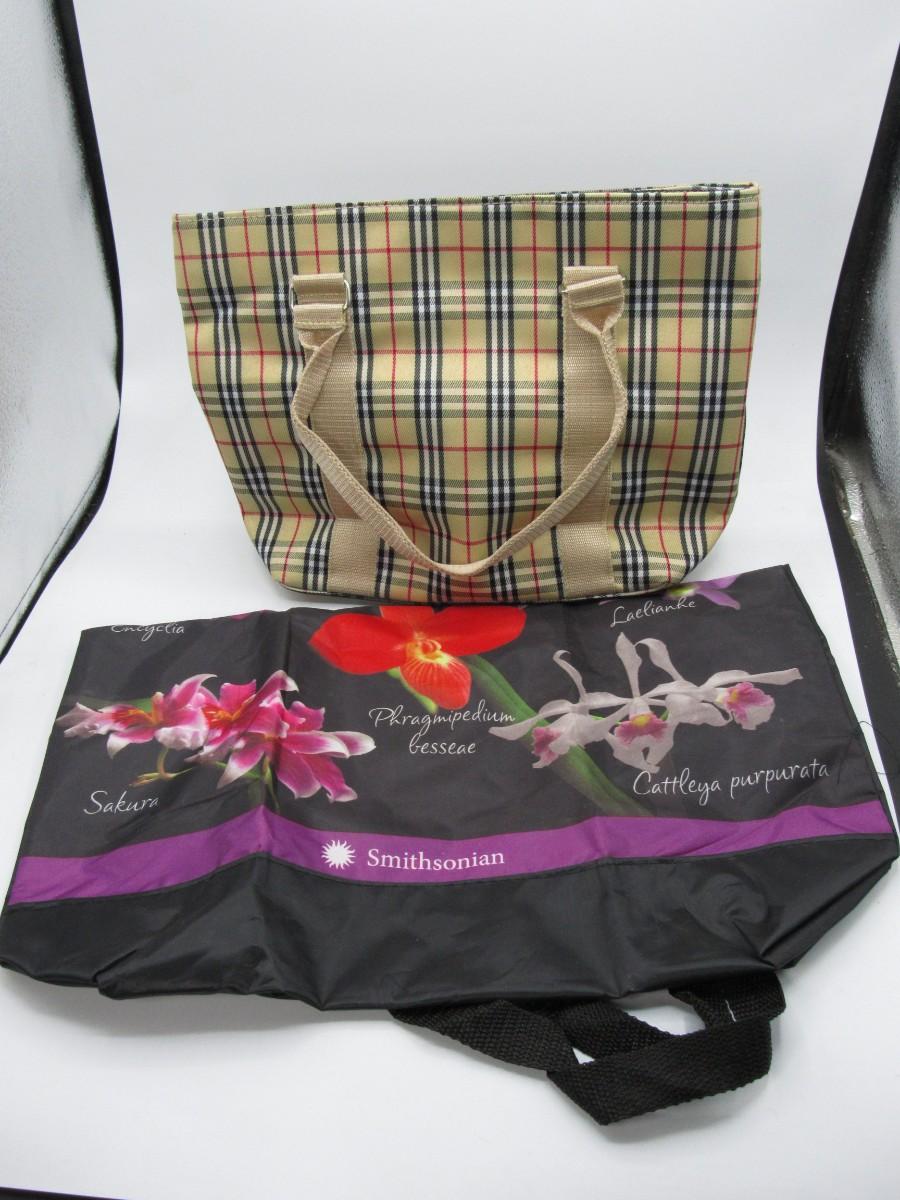 2 Small totes - lunch box - plaid and Smithsonian flowers