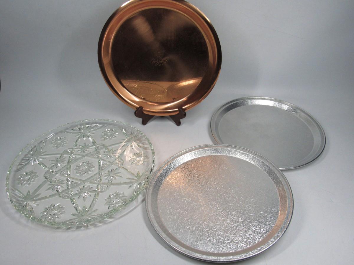 4 pc Lot - Round Party Platters - Copper, Glass, Aluminum