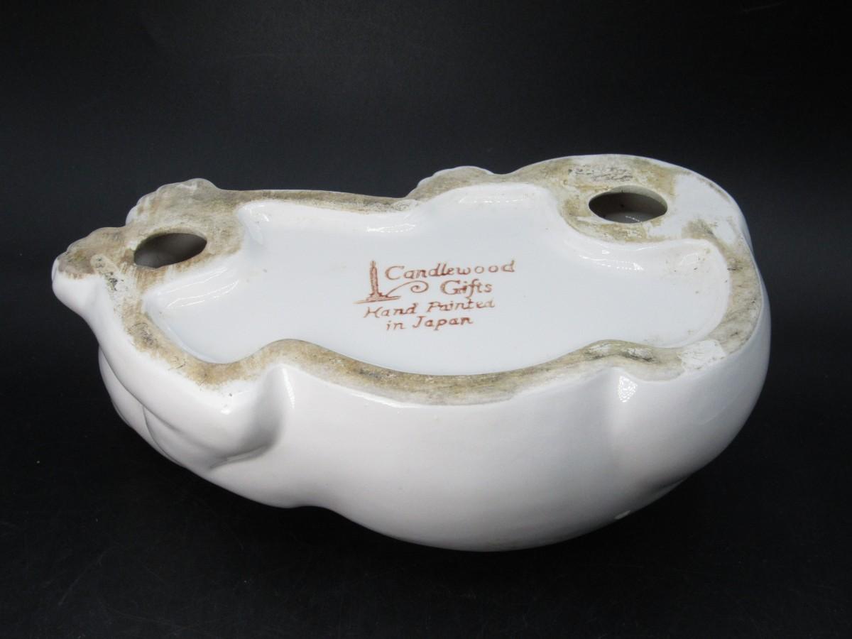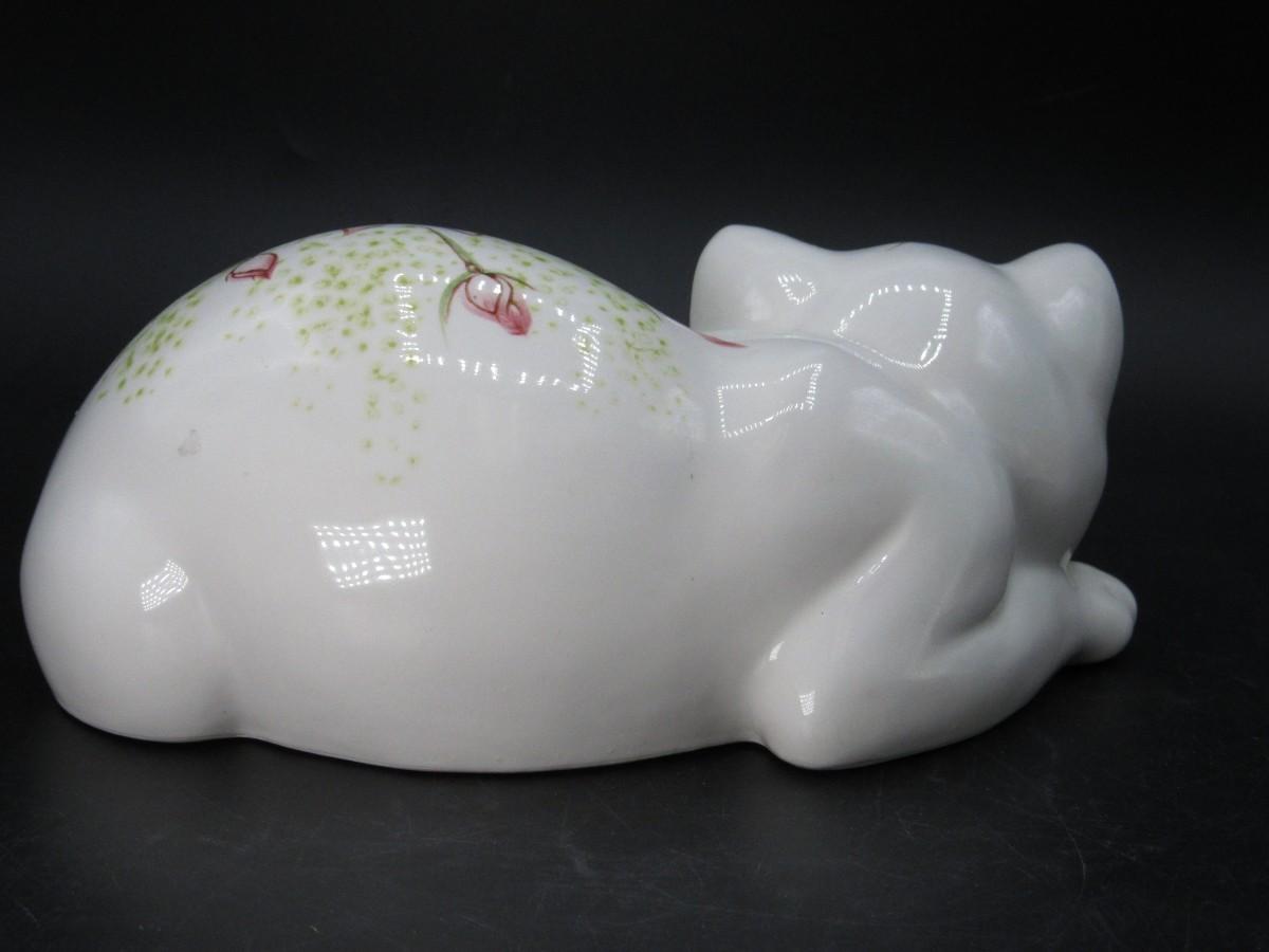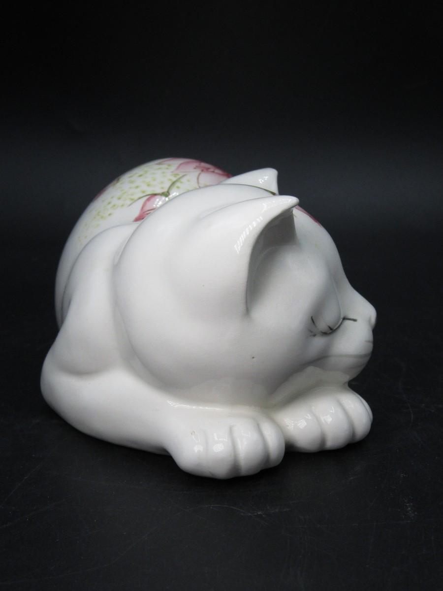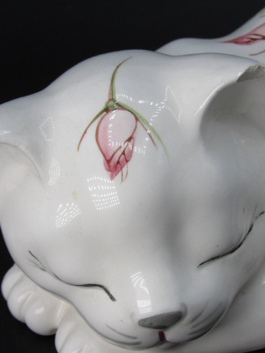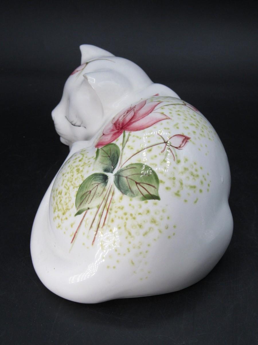 Ceramic Sleeping Cat Figurine with Flower made in Japan