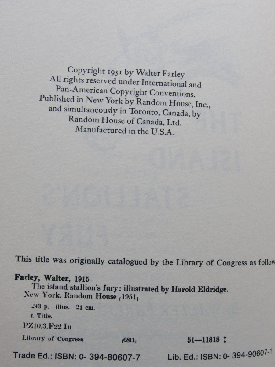 The Island Stallion's Fury Walter Farley 1951 1st Edition Hardcover Random House