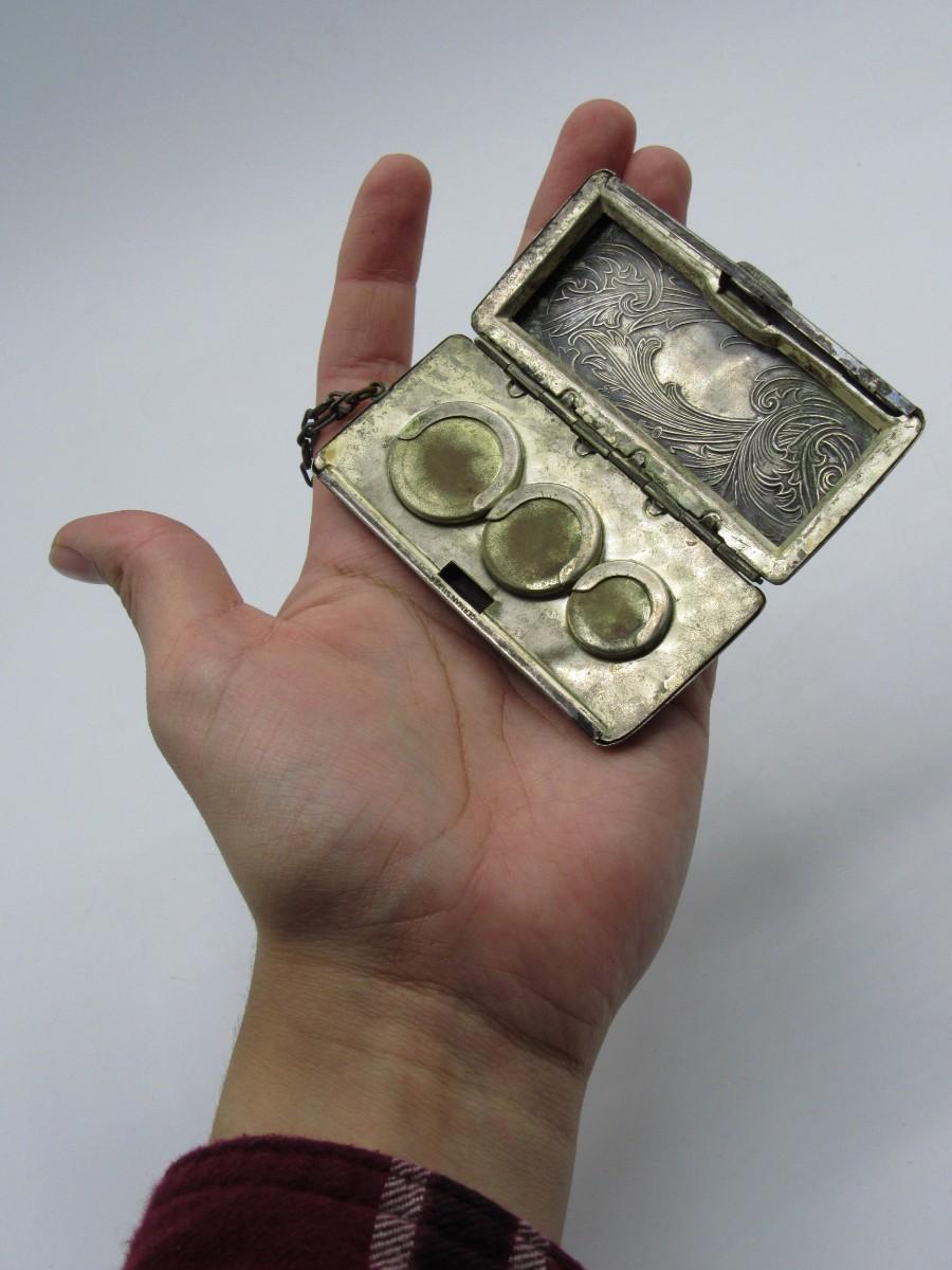 There is no damage to the case and is in overall good collectible condition. Closes all the way and functions properly with coins, check pictures for more details and sizing.