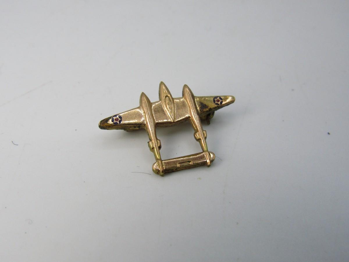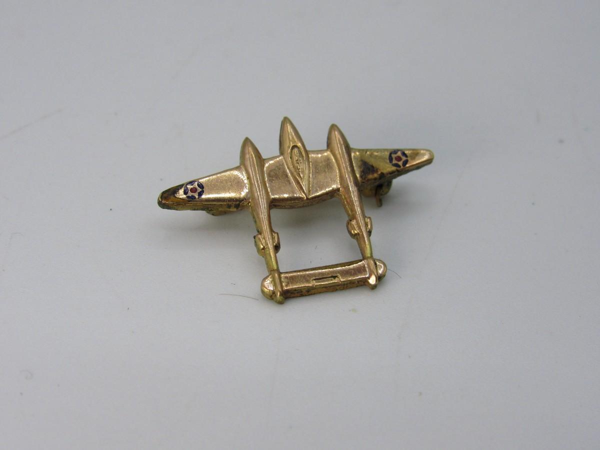 1941-1942 Gold-Filled P-38 Lightning Fighter Lapel Pin