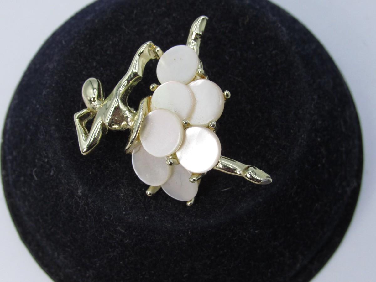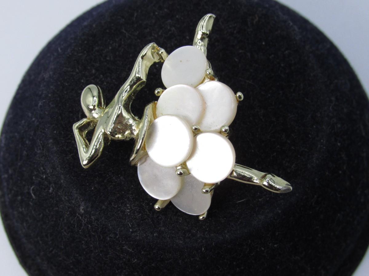 Ballerina Pin Brooch in Skirt made of MOP Mother of Pearl Disks